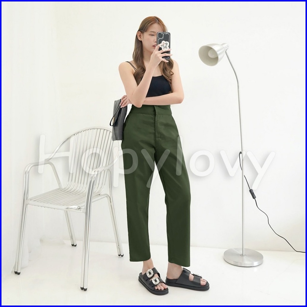 Celana Bahan High Waist Wanita Celana Kerja Highwaist Baggy Pants Gabby Celana Panjang Katun