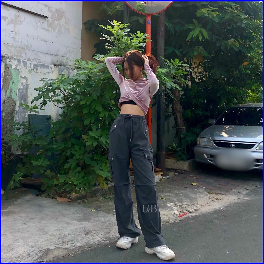 U B - 2001 Celana Cargo Wanita Kargo Pants Kulot Highwaist Loose Premium Super Melar Bahan Parasut Stretchy Adem Nyaman