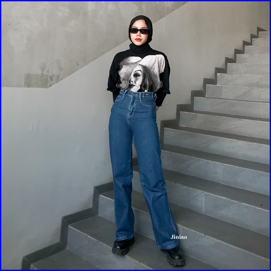 Jiniso - Highwaist Adjustable Baggy Under Age Jeans