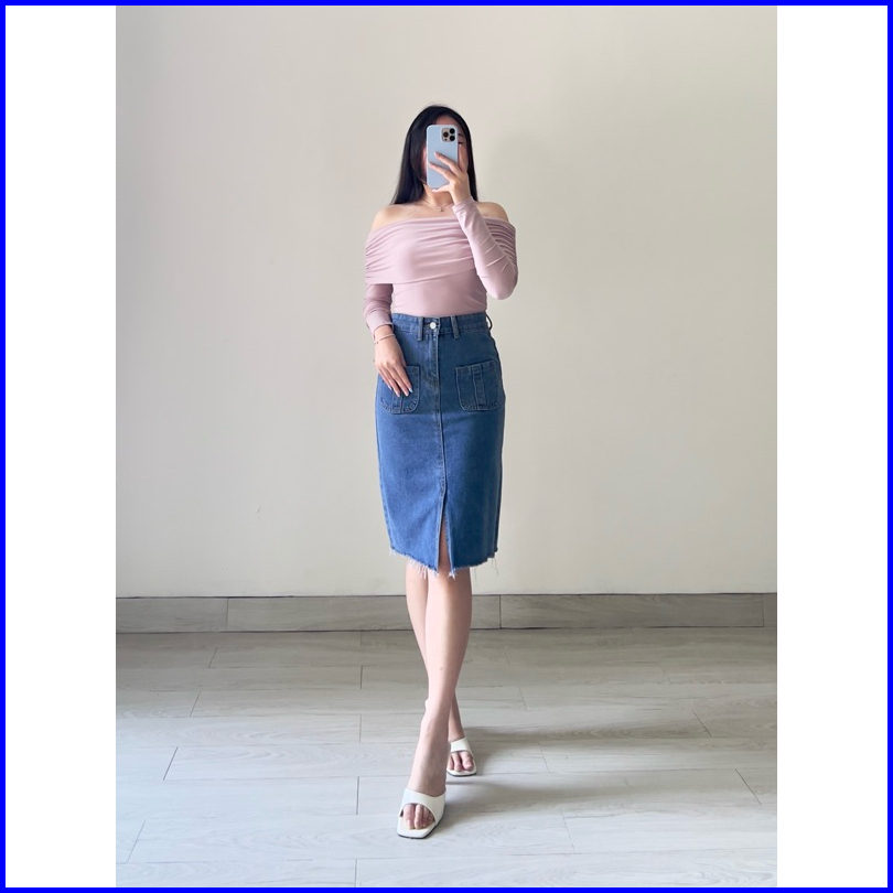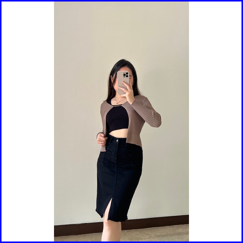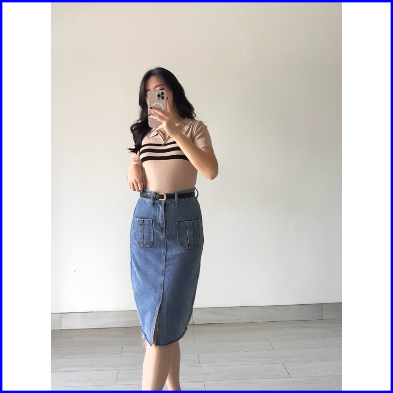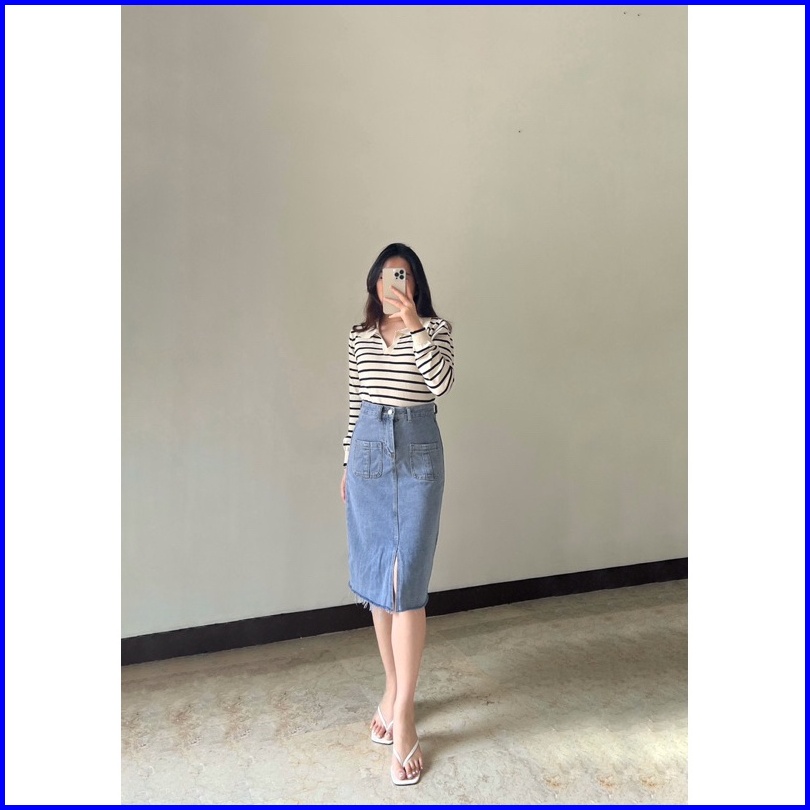 Klavee - Freya Denim Skirt Rok Denim Jeans Wanita Midi Korean Style Skirt
