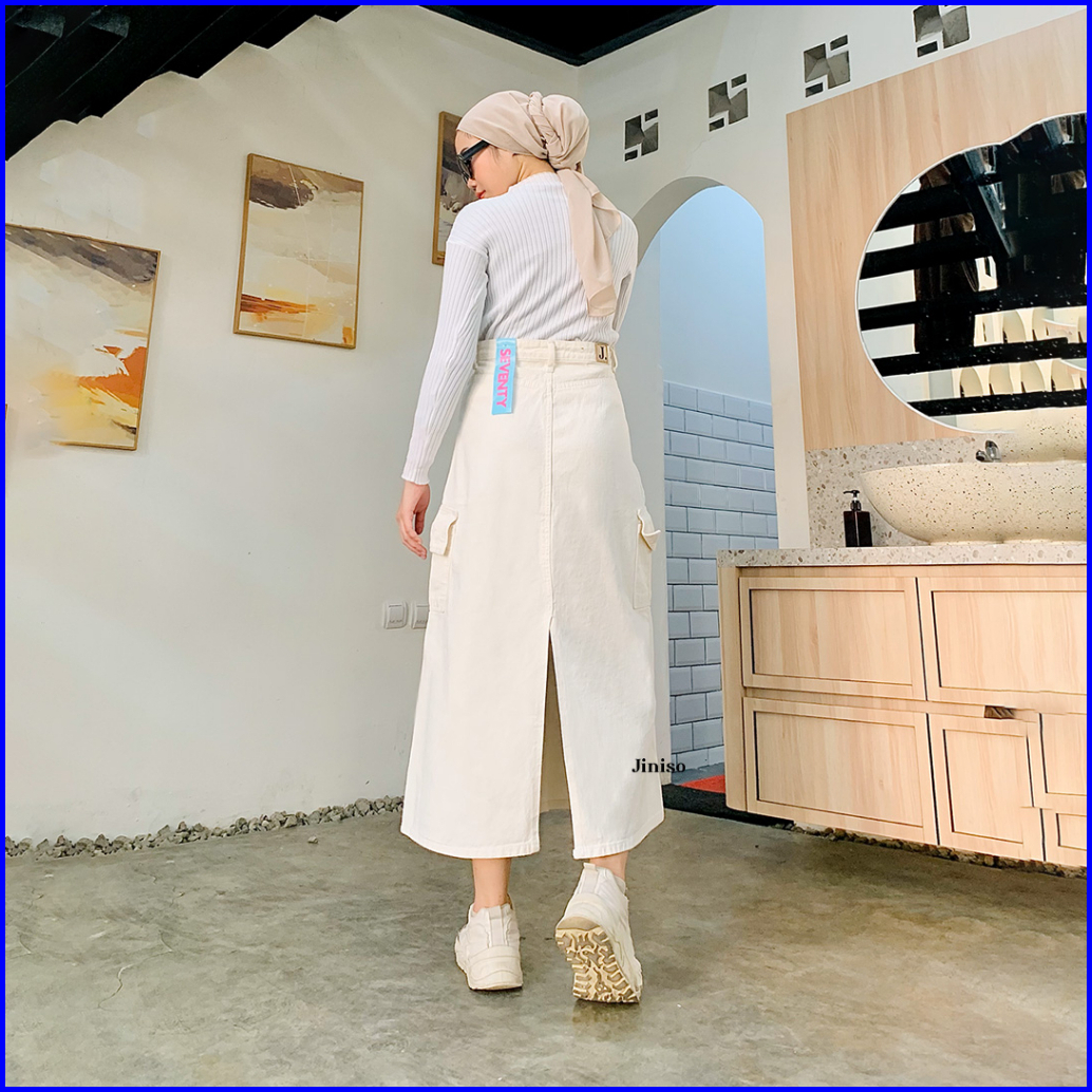 Jiniso - Highwaist Rok Cargo Jeans Panjang 984 Seventy