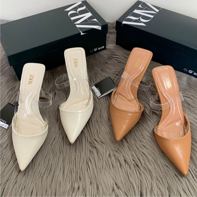Sandal Sepatu Wanita Heels ZR125 7 Cm Kulit Cream Elegan SZR009 Hills High Hils ZARA Original Import Hak Kondangan - ABF