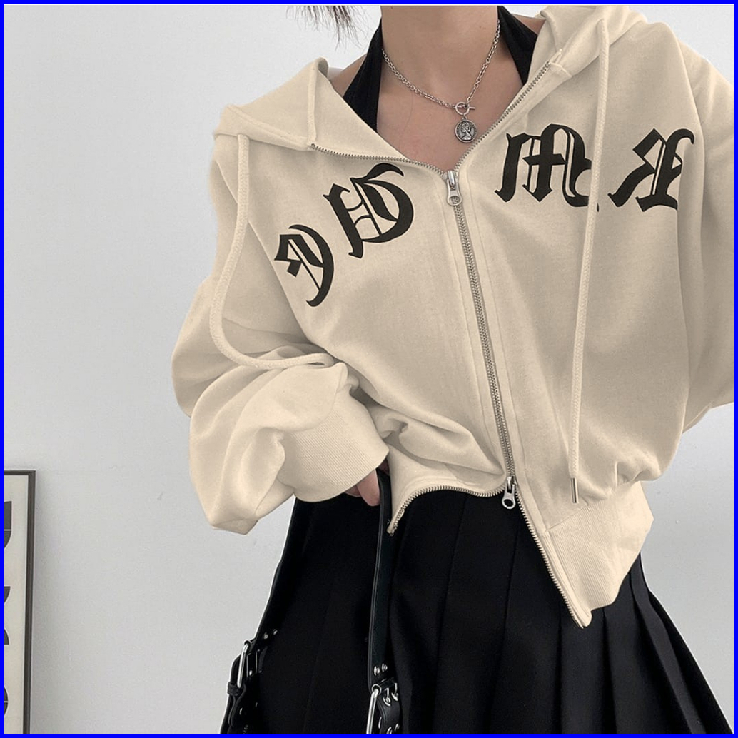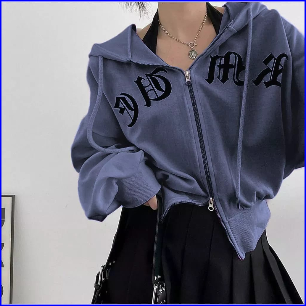 Japanese Hoodie Ziper Wanita Oversize Sweater Jaket Double Ziper Kekinian Korean Style