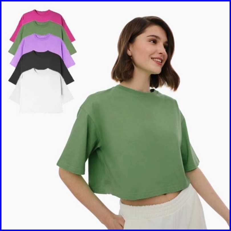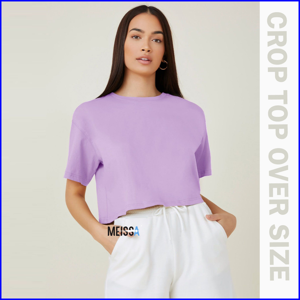 Meissa Kaos Crop Top Polos Kaos Oversize Wanita Polos Atasan Crop Top Sport