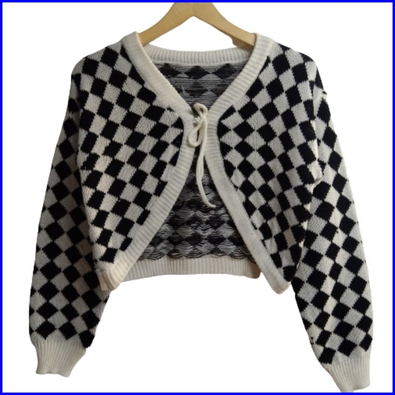 Crop Kotak Tali Cardi Crop Ketupat Balero Motif Sido
