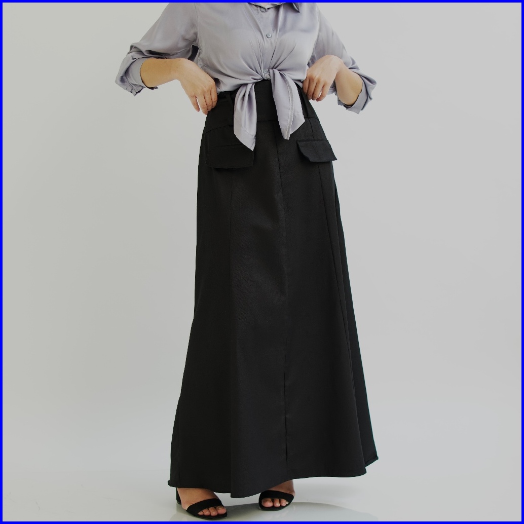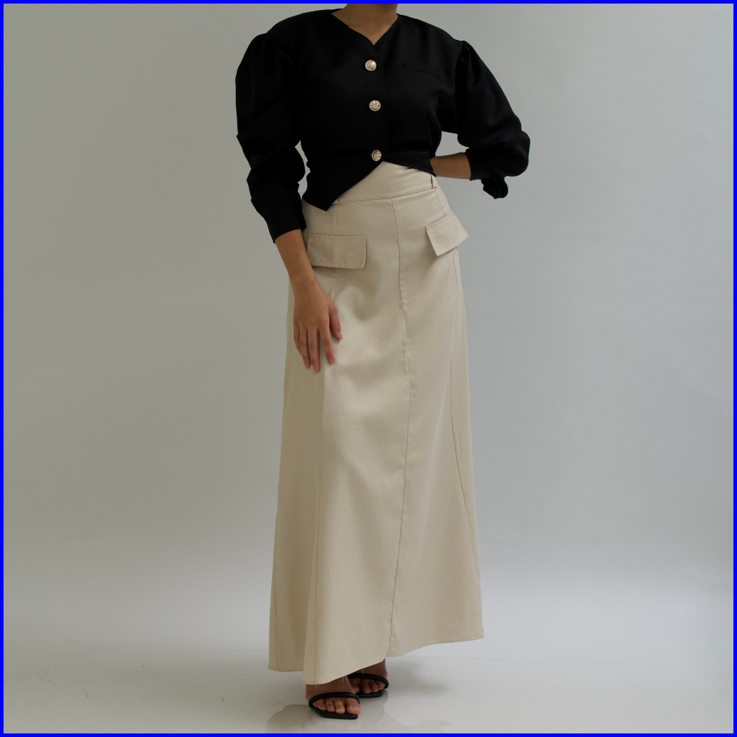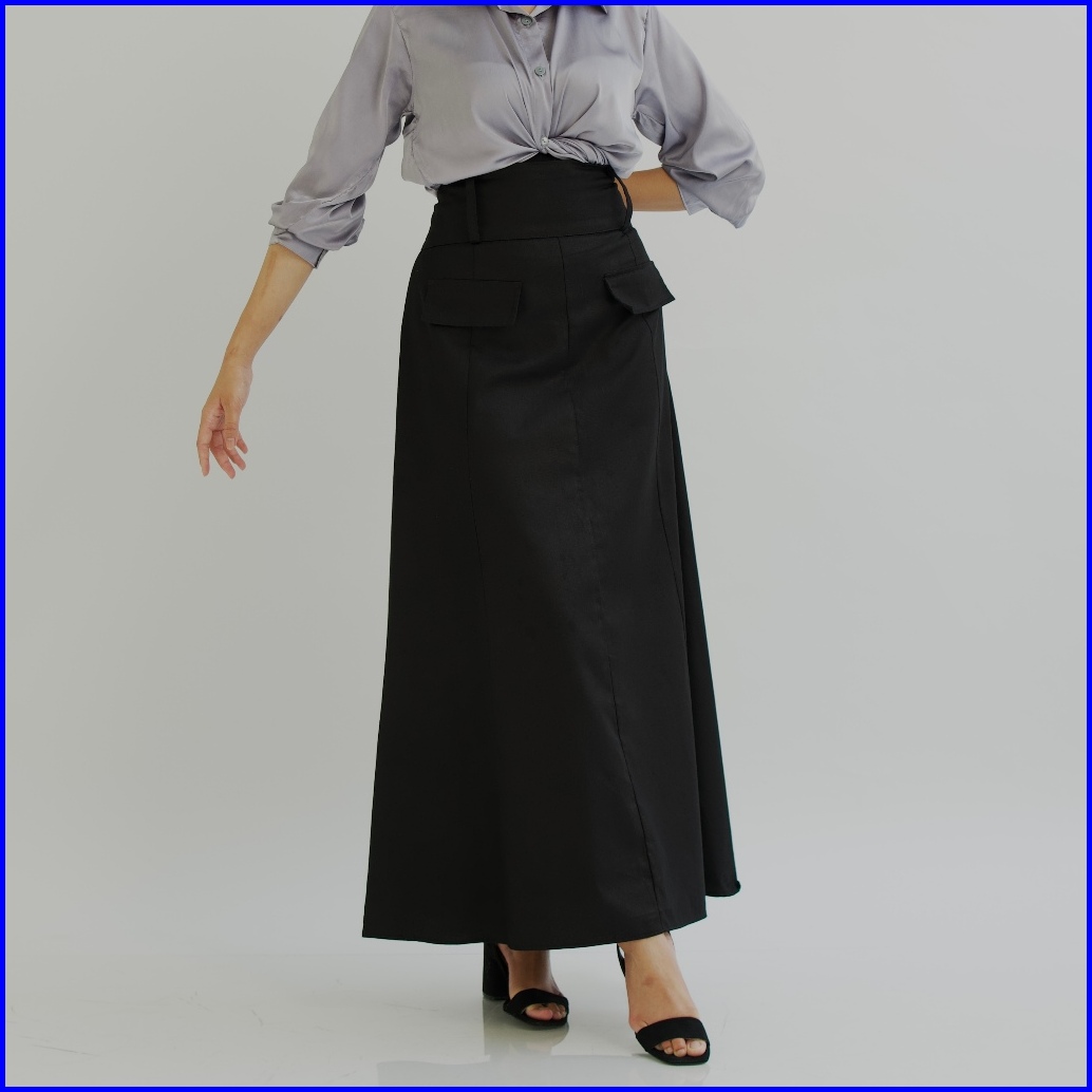 Berdine Rok Highwaist Katun Premium Khaki Black Baby Blue
