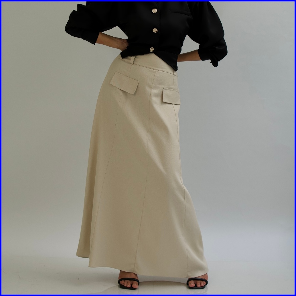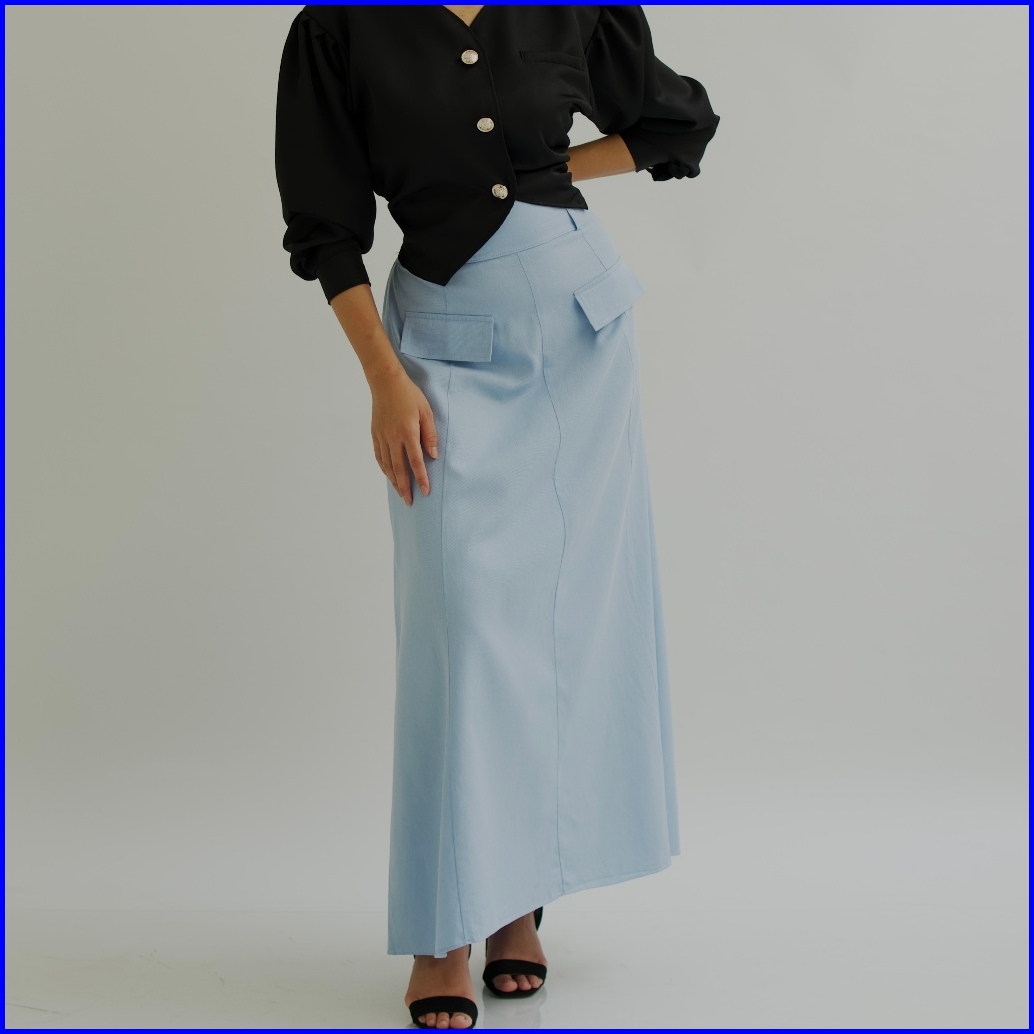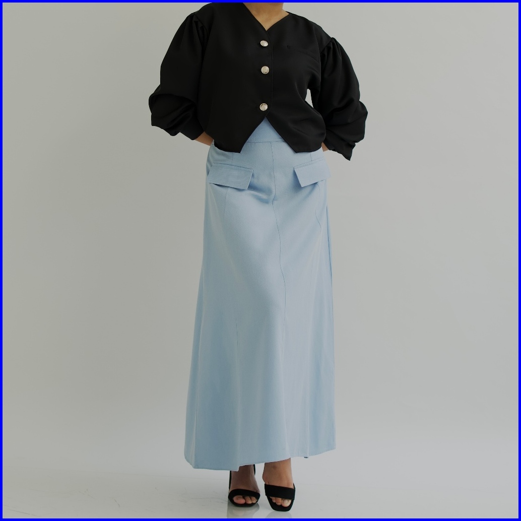 Berdine Rok Highwaist Katun Premium Khaki Black Baby Blue