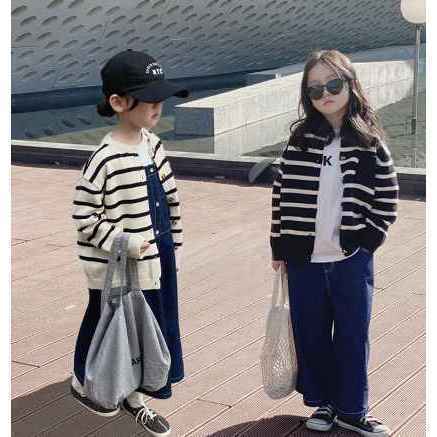 Cardigan Girls Sweaters Children's Soft New Knit Child Classic Striped Round Neck Sweatshirt Toddler
