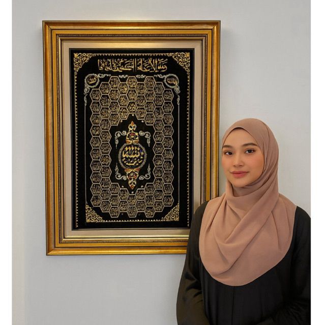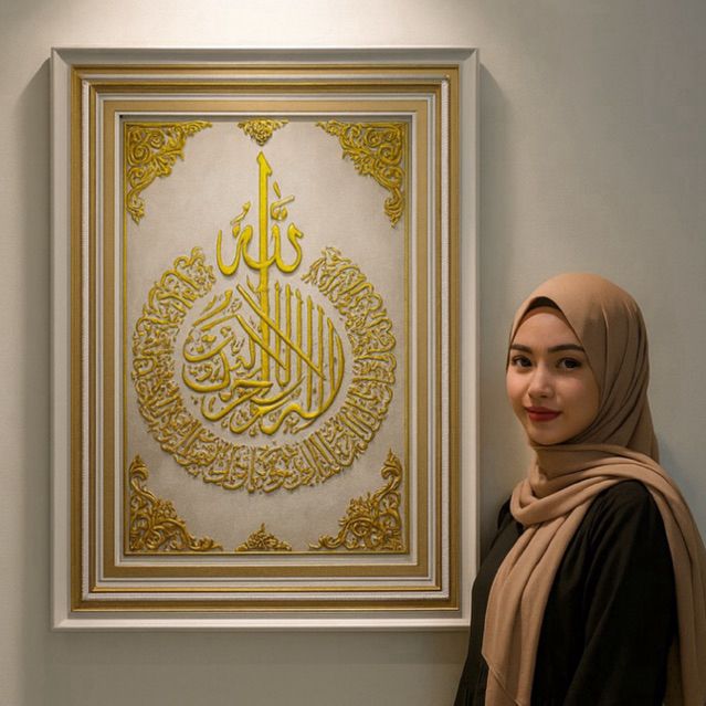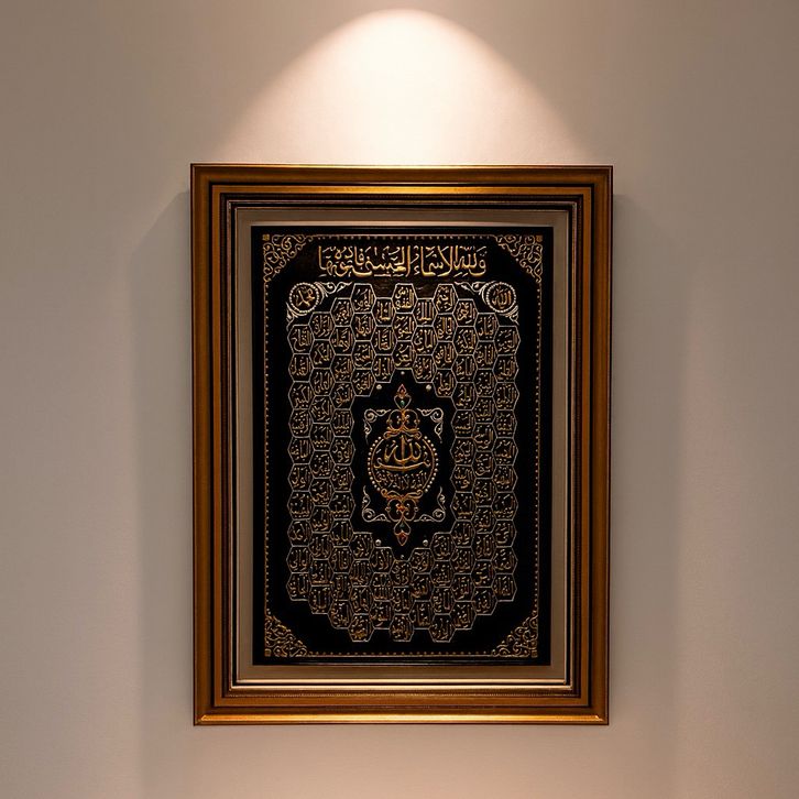 Kaligrafi Timbul Asmaul Husna dan Ayat Kursi 112x82cm Hiasan Dinding Islami Premium