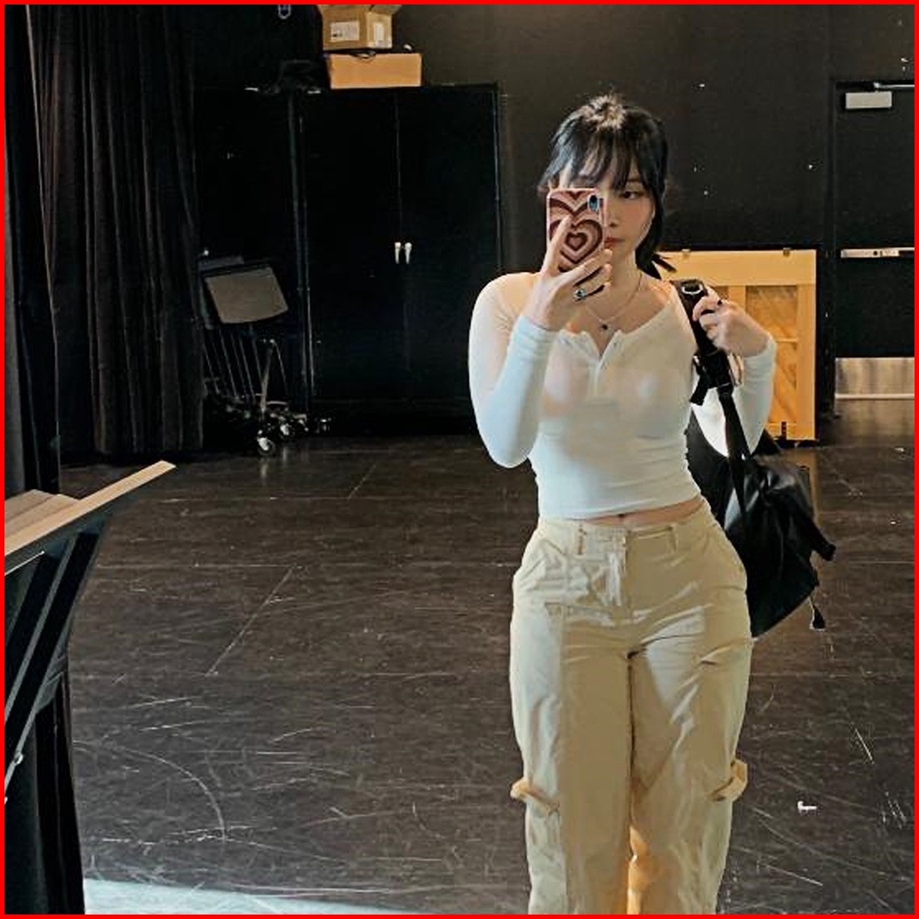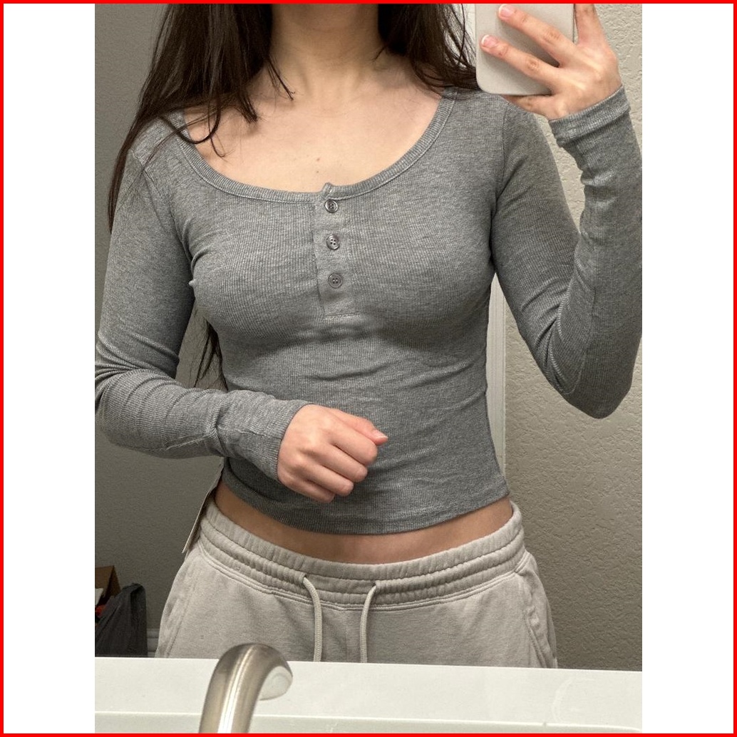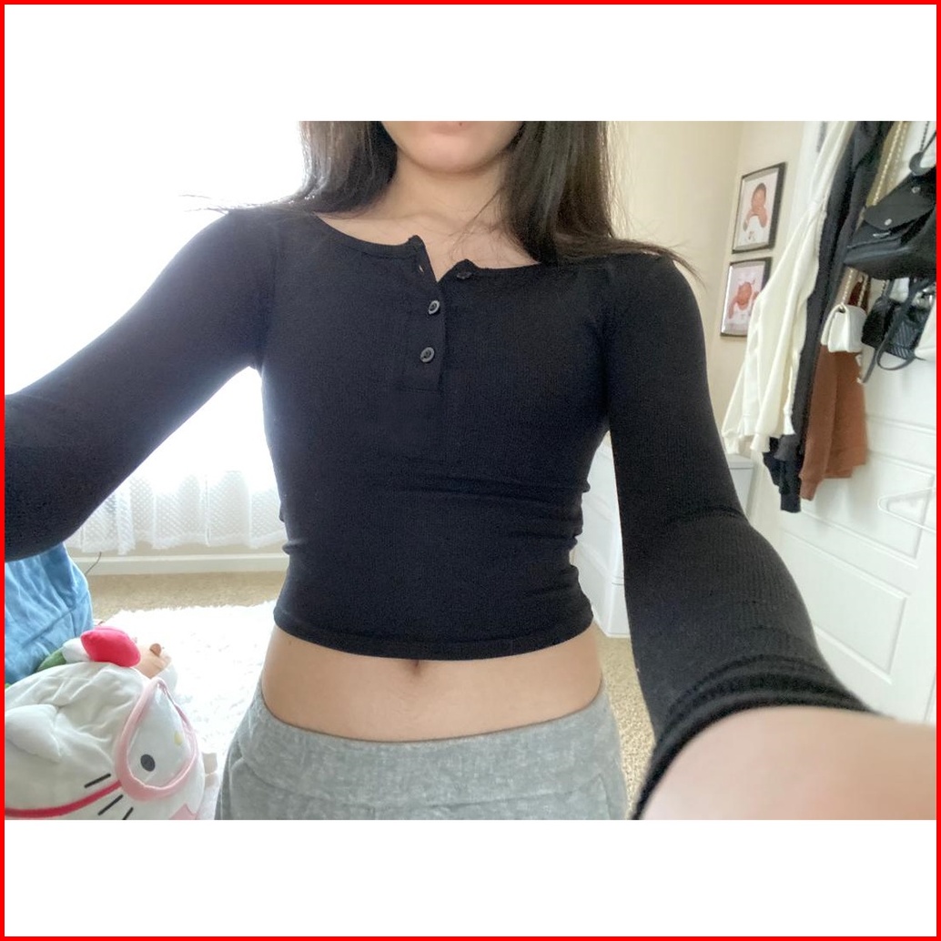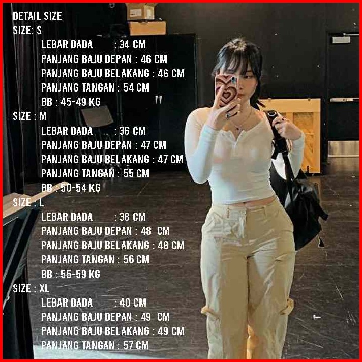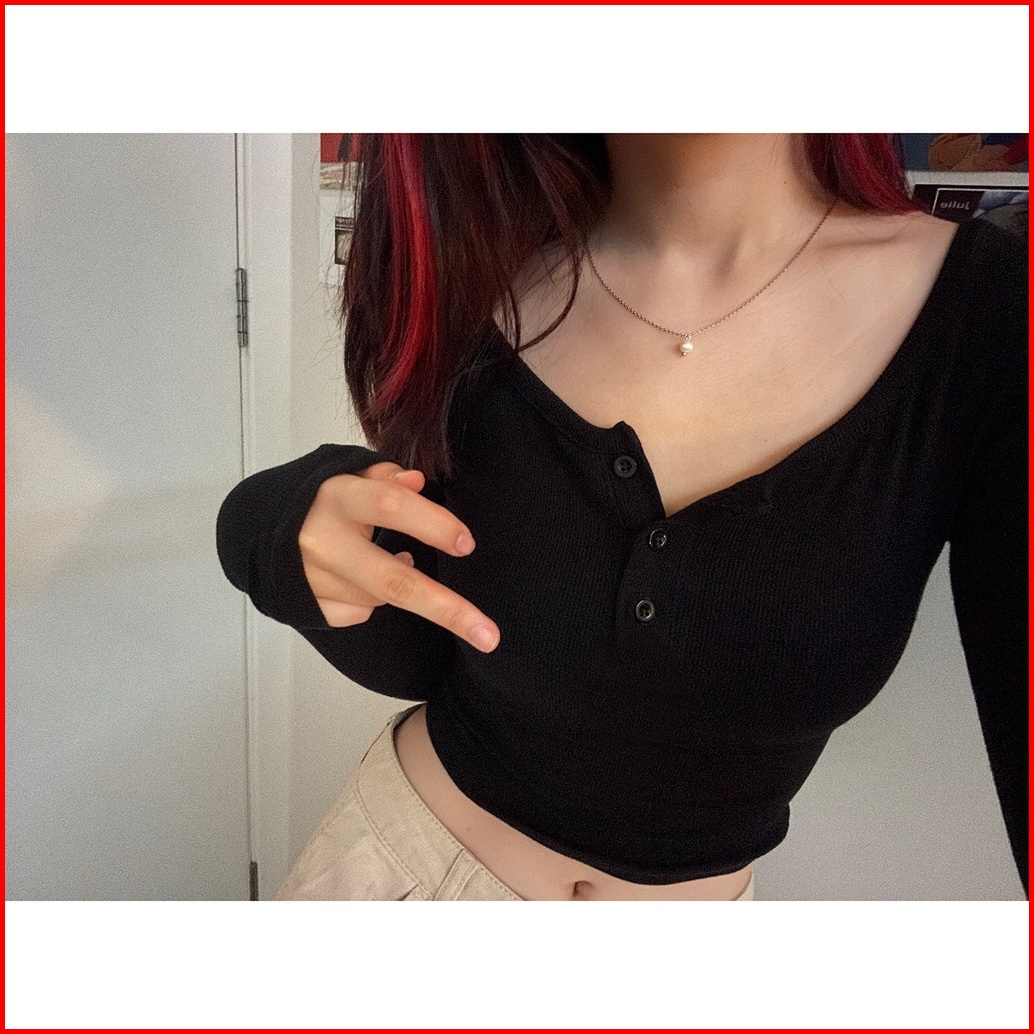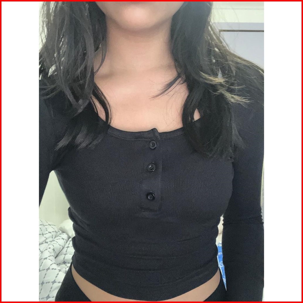 Part 1 Blouse Korean Scop Neck Rib With Buttons 2144