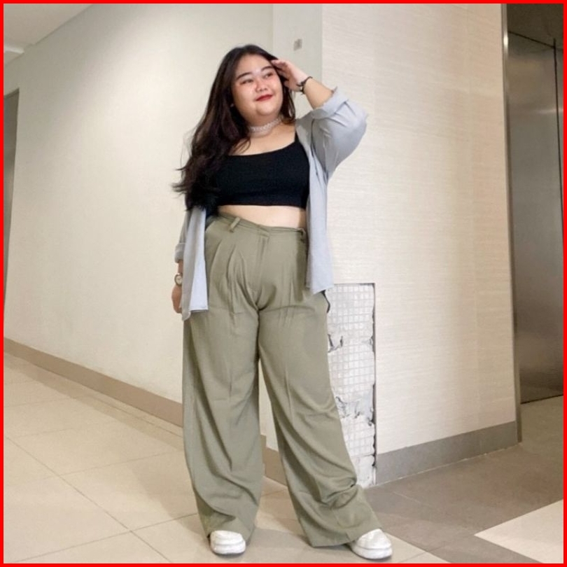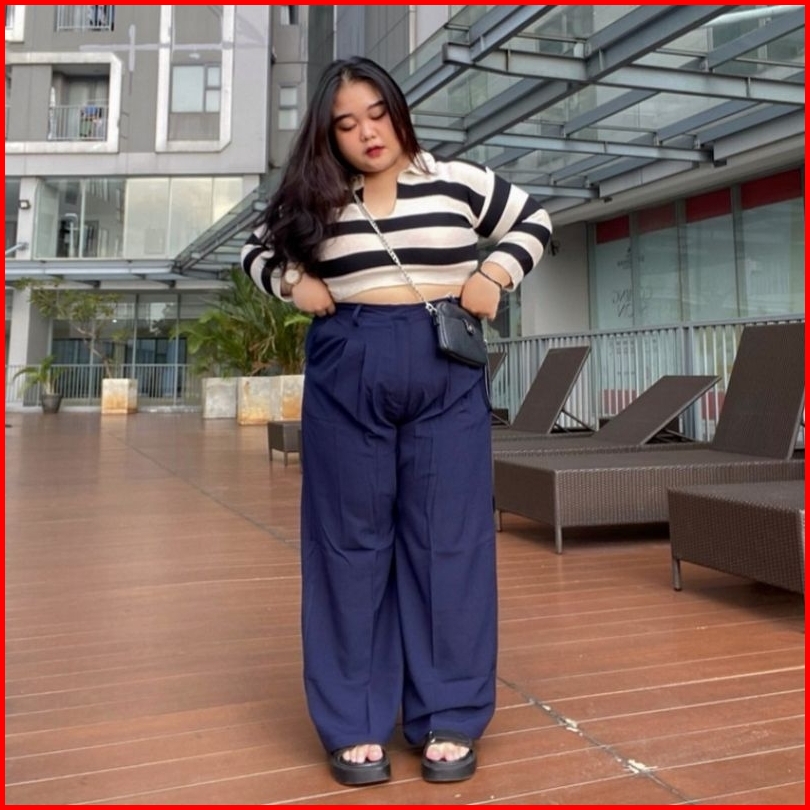 Loose Pants Trousers Jumbo Big Size Highwaist Wanita Anti Kusut - Celana Kulot Highwaist Wanita Bahan Jatuh Celana Kanto