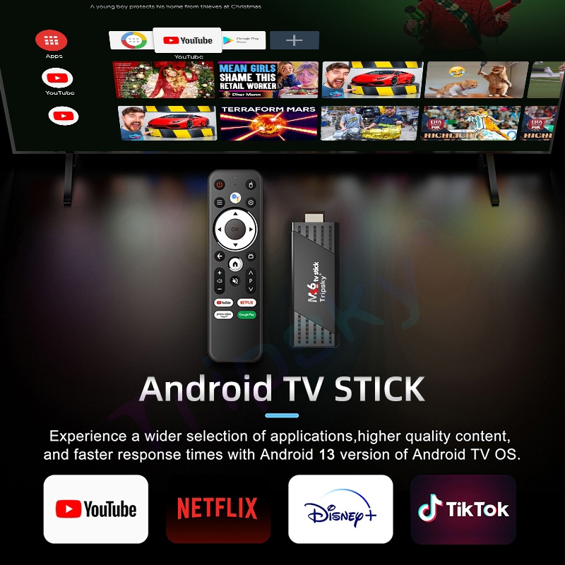 Tripsky android tv stick Ram 4GB Rom 32GB btelevisi digital lokal Android 13 Smart Tv Mini android tv box Dolby DTS Soun