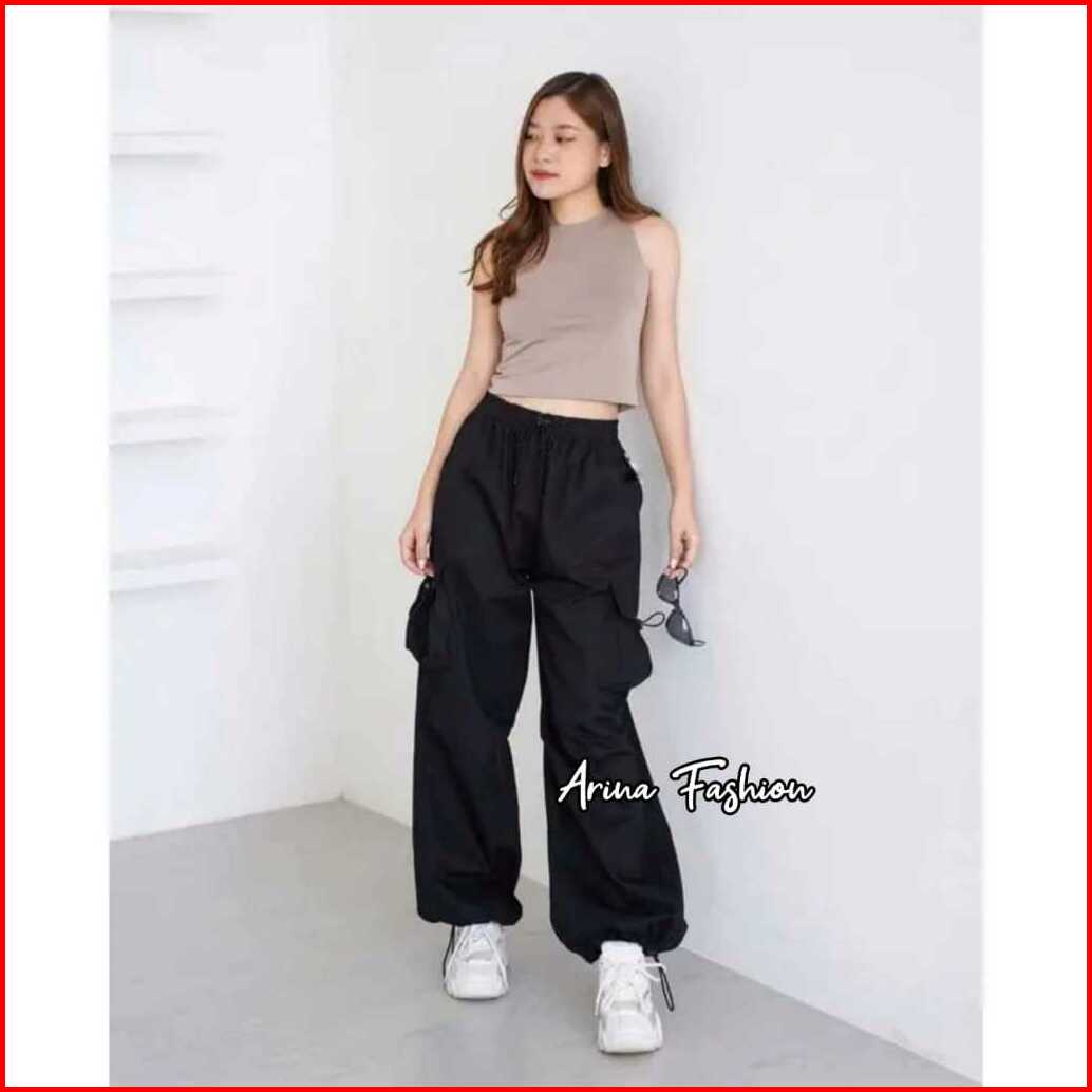 Cargo Pants Wanita Highwaist Loose Pants Korean Style Jumbo - Celana Cargo Wanita Terbaru