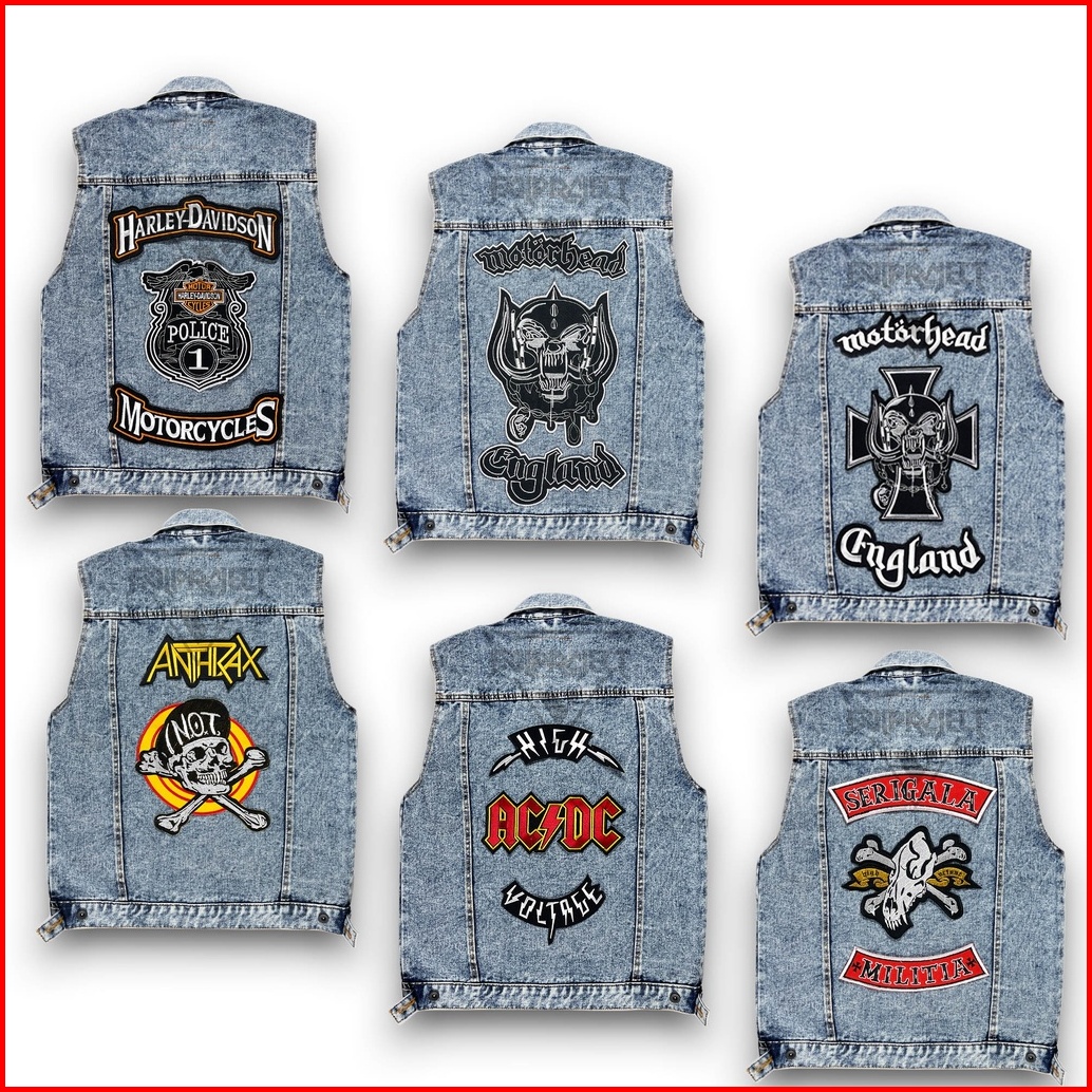 Jaket Rompi Pria Motif Band Aksesoris Sudah Di Jahit Desain Casual Yang Menambah Kelakian 99 9 Jaket Jeans Rompi Jeans R