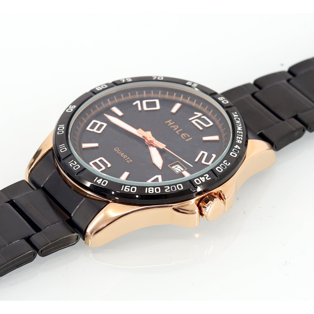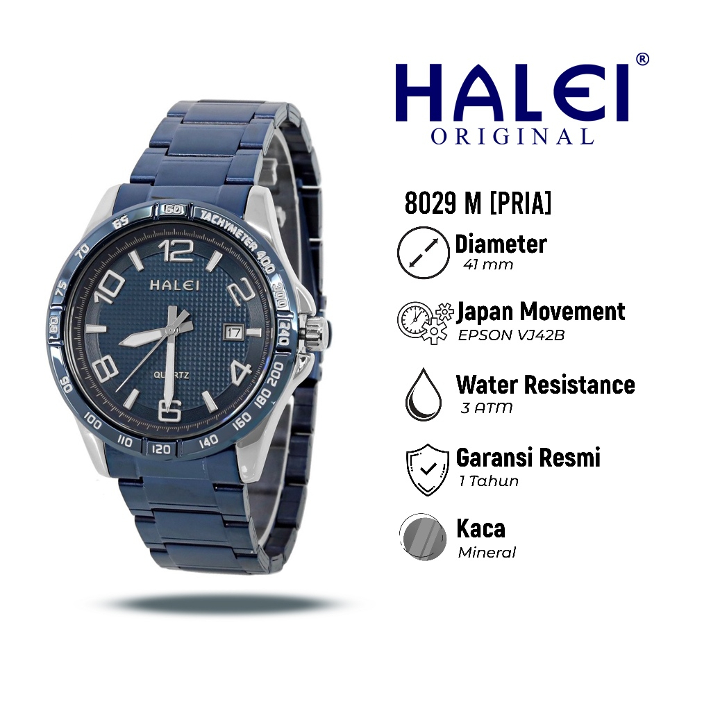 Halei 8029 M Jam Tangan pria Halei Original Anti Air Rantai Stainless Back Tanggal Analog Kekinian