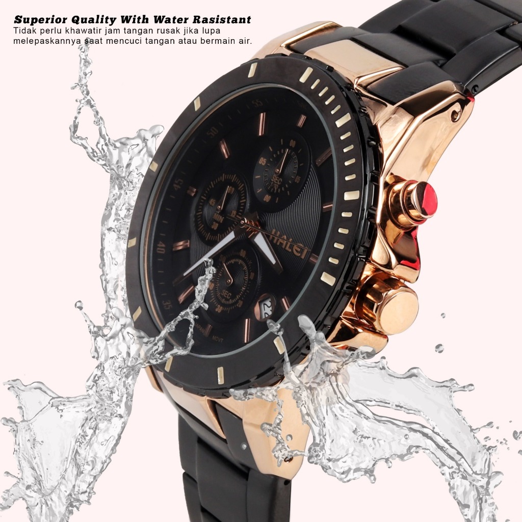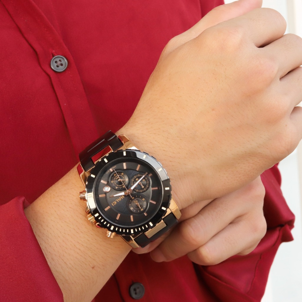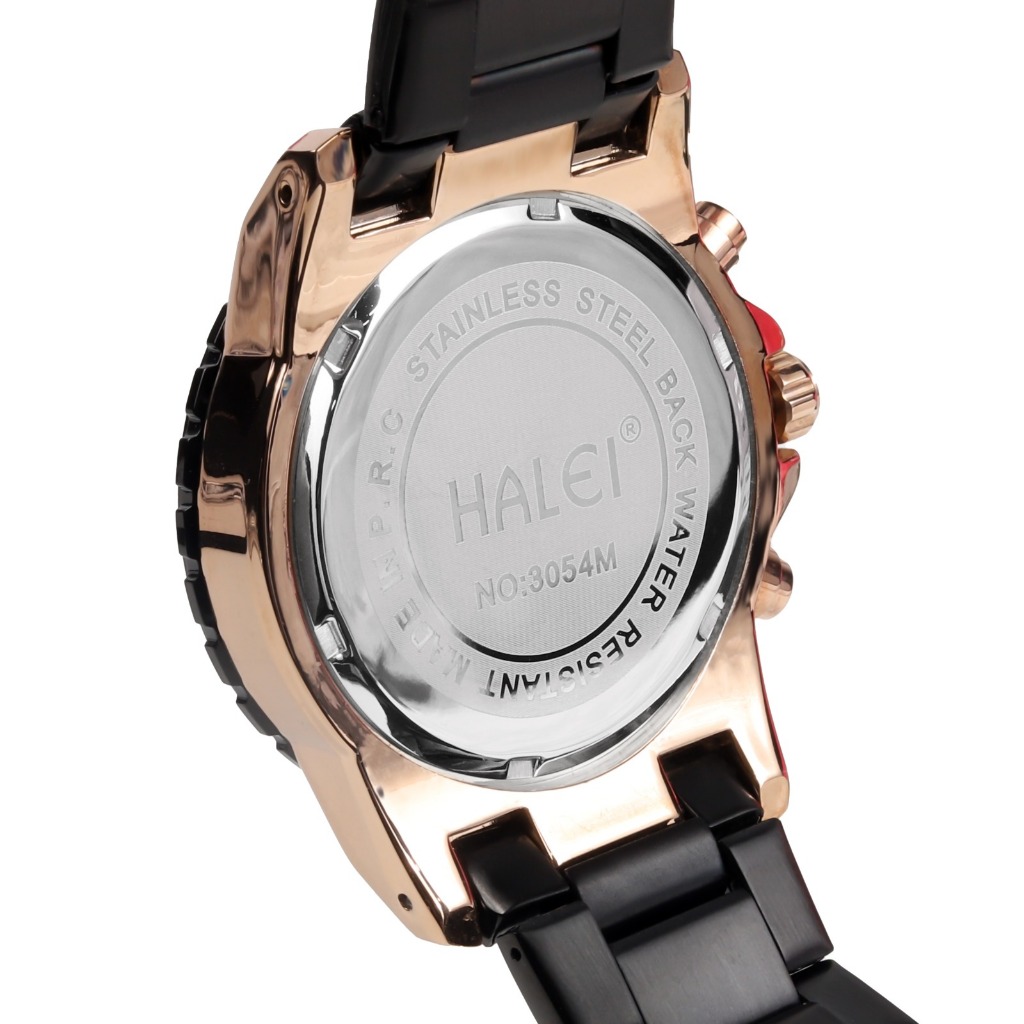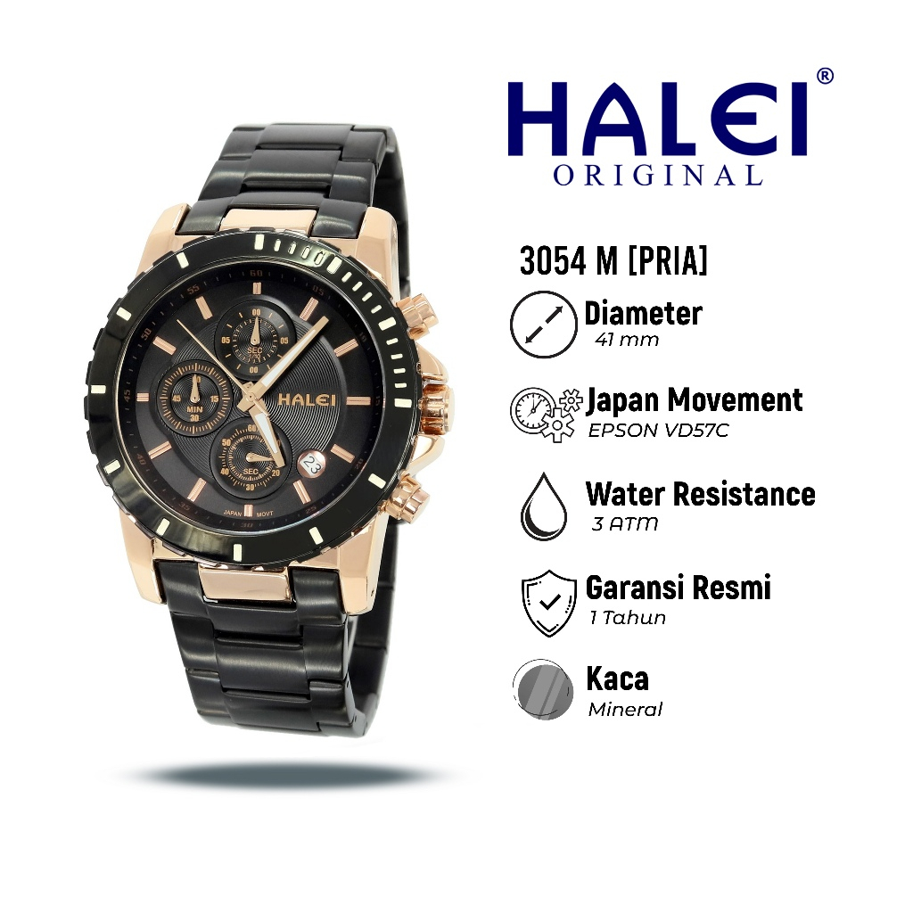 Halei 3054 M Jam Tangan Pria Halei Original Anti Air Rantai Stainless Back Chrono Tanggal Analog