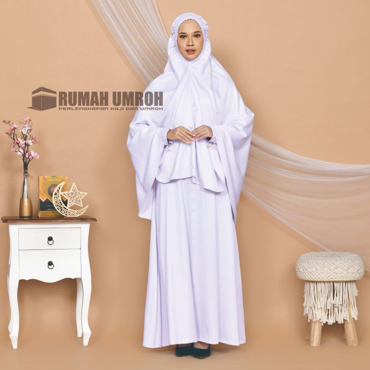 Pakaian Umroh Set Wanita baju ihrom haji wanita set gamis Umroh Set PUTIH