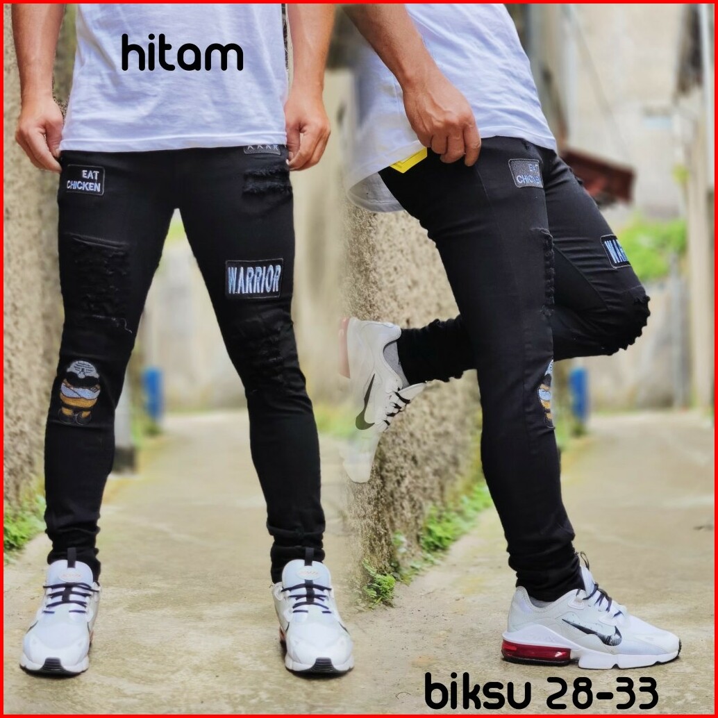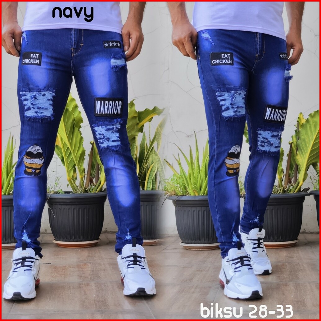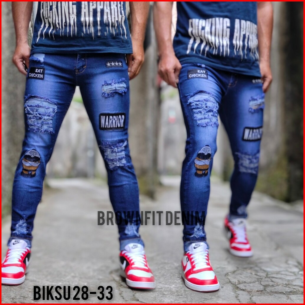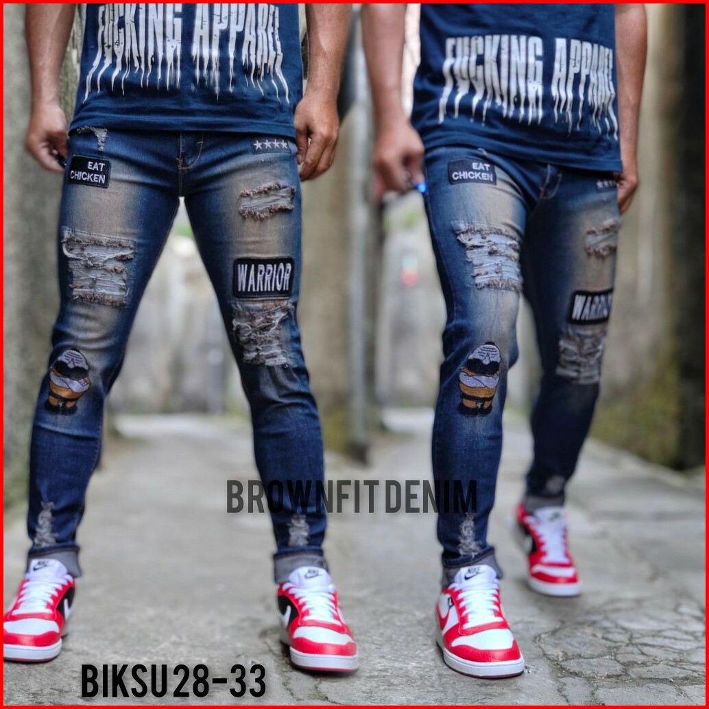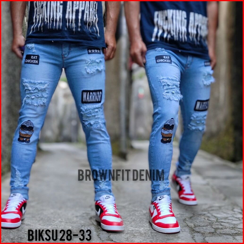 Celana Sobek Pria Jeans Emblem Biksu