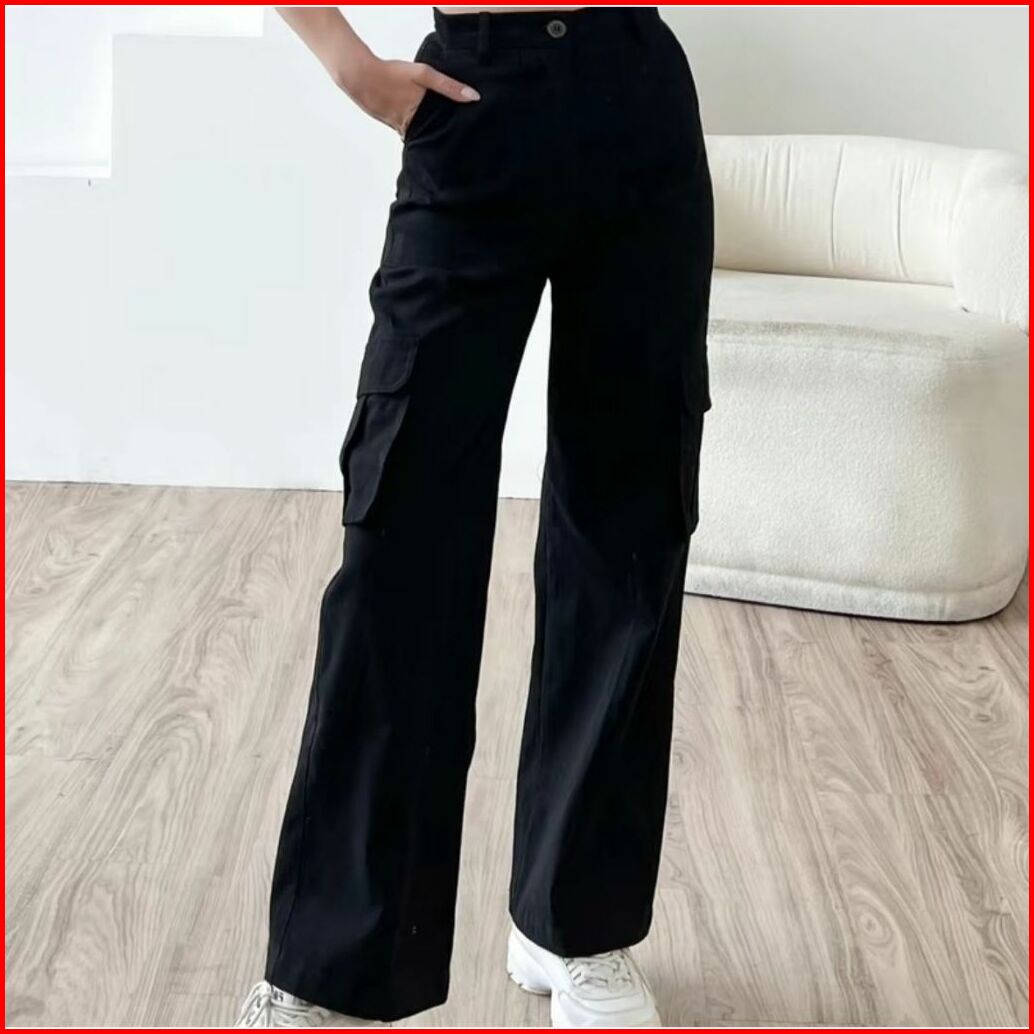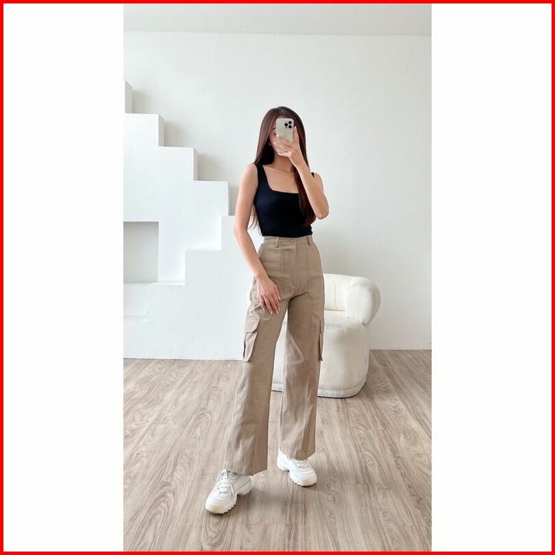 Zayida - Rora Cargo Pants - Celana Cargo Wanita Katun Twill Stretch Highwaist Loose Korean Jumbo