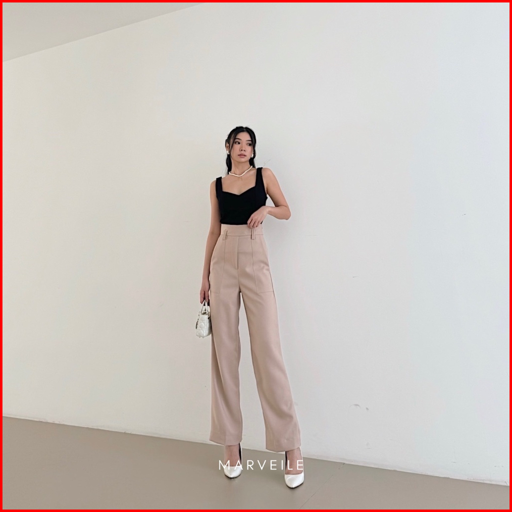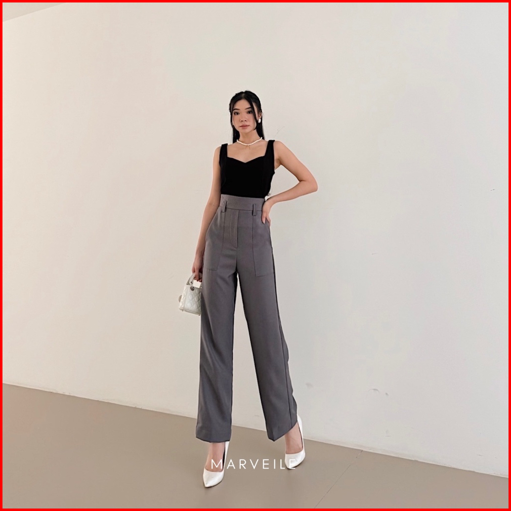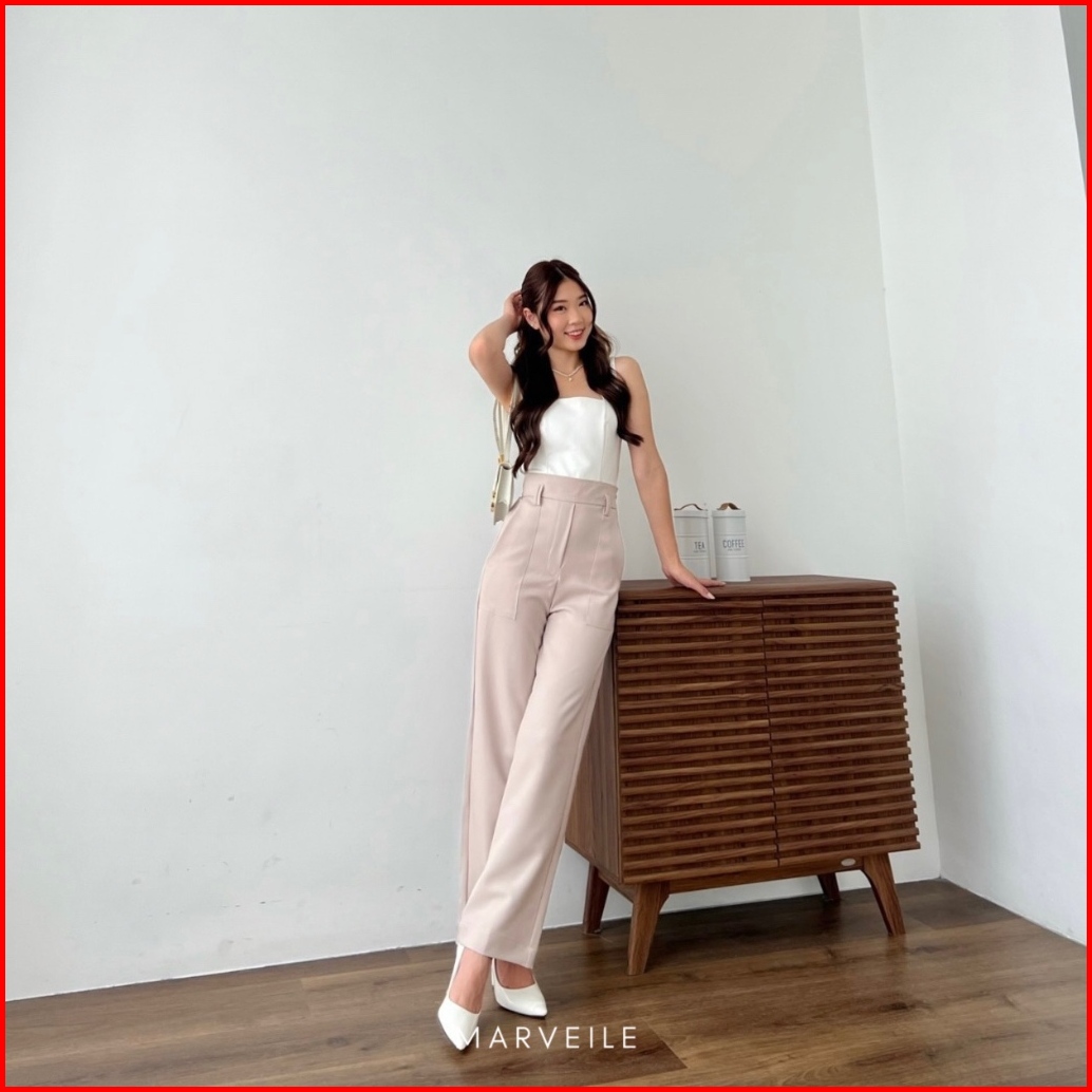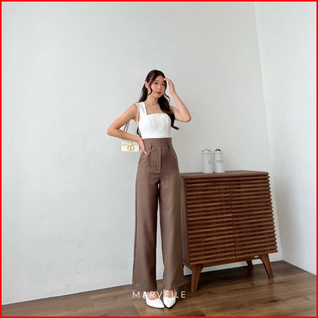 Marveile Diora Highwaist Pants Kulot Straight Cut Pants Wanita