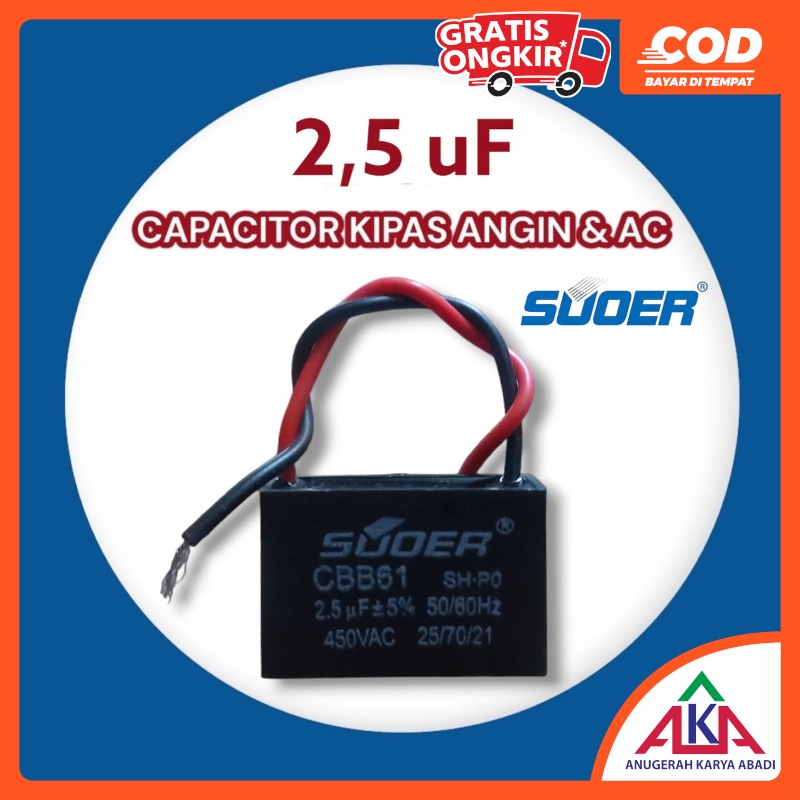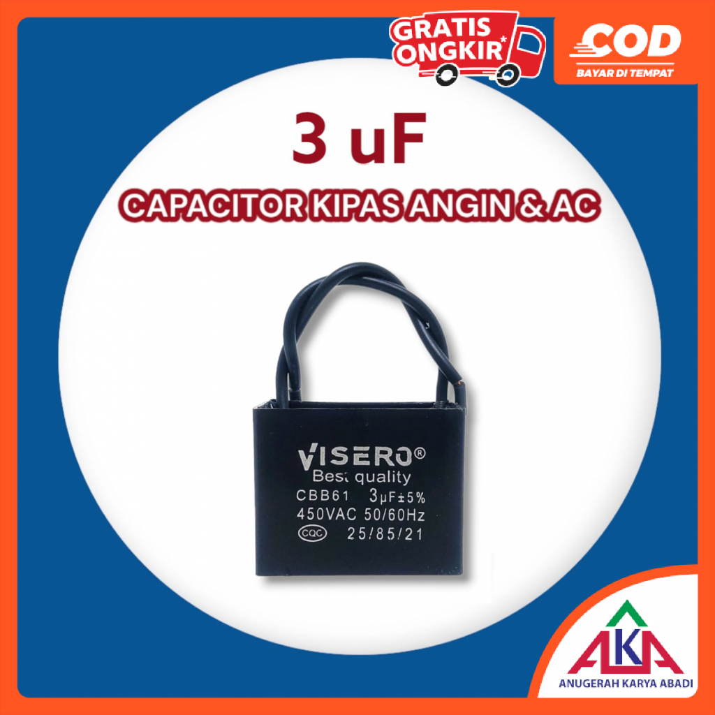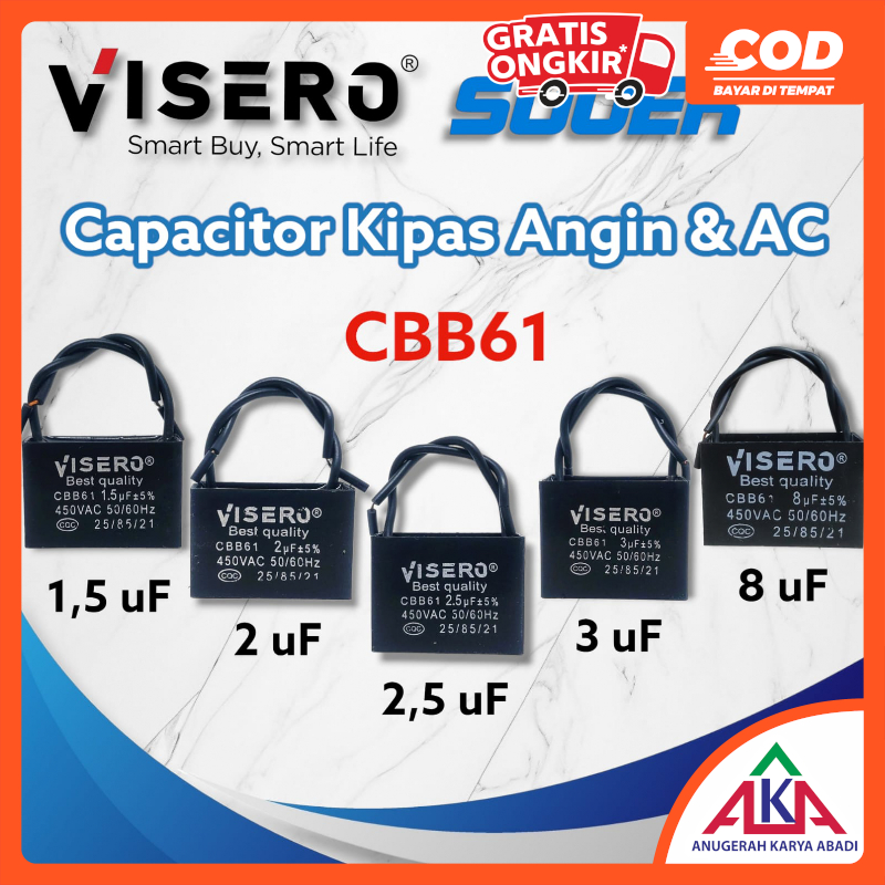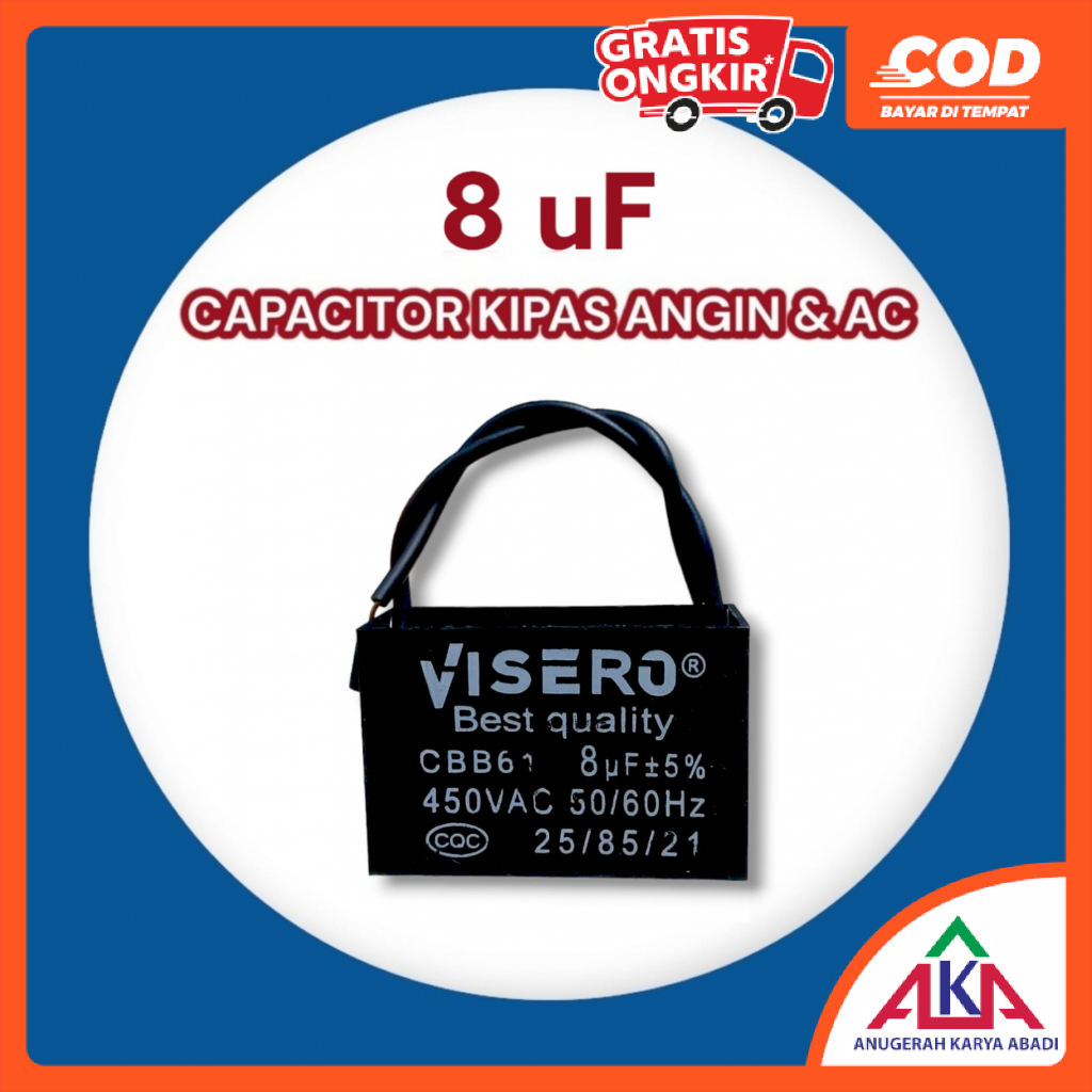 Kapasitor Kipas Angin VISERO SUOER – Ukuran 1.5–8 uF Microfarad, Komponen AC & Kipas Listrik