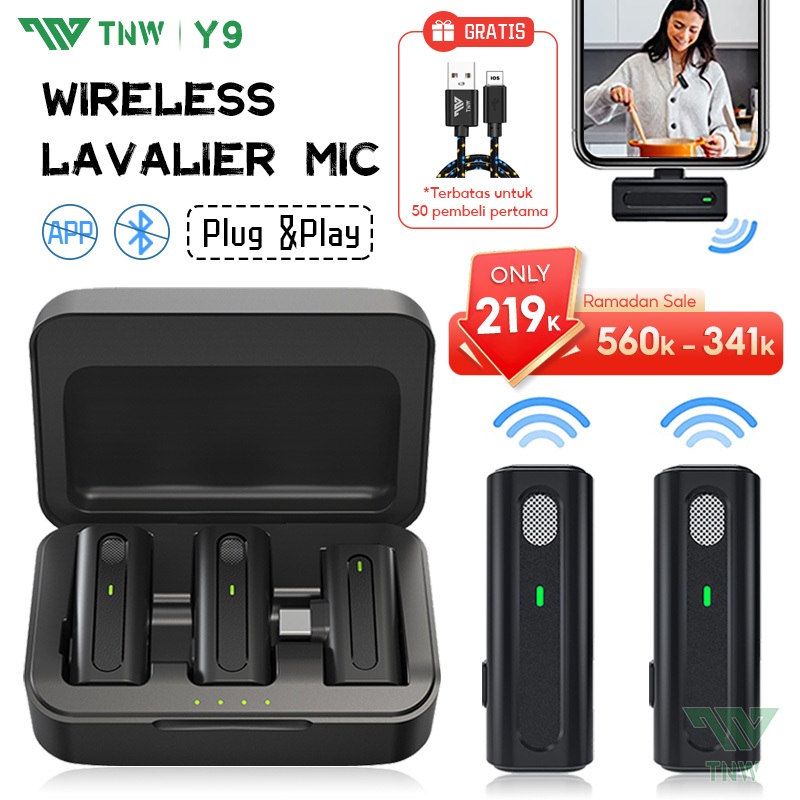 TNW-Y9 Microphone Wireless Dual Mikrofon Mic Wireless Clip on Microphone Youtuber Suara Jernih Mic Bluetooth Untuk Tikto