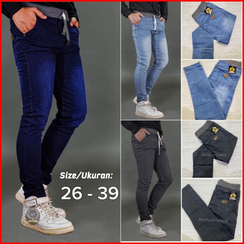 Celana Panjang Cowok Slim Fit Jeans Pinggang Karet Feil Celana Jeans Pria