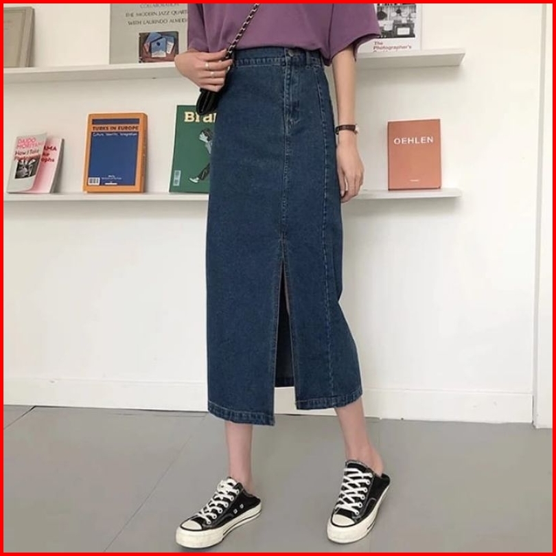 Rok Jeans Higwaist Belah Samping Korean Style Rok A-line