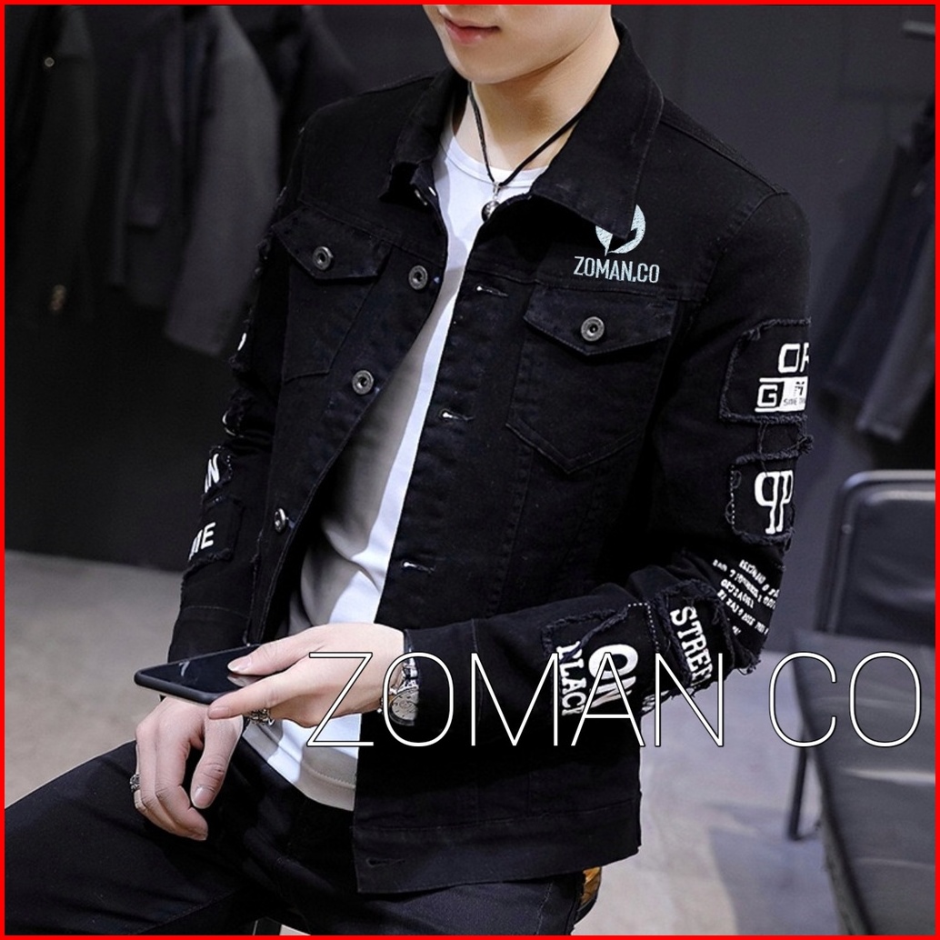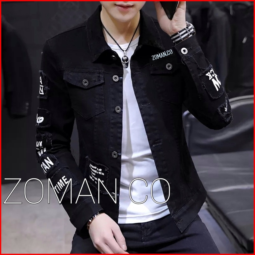 Jaket Jeans Denim New Emblem Z01 Black Jaket Casual Bordir Pria Jaket Korean Style Size M L Dan Xl Jaket Hitam Pria