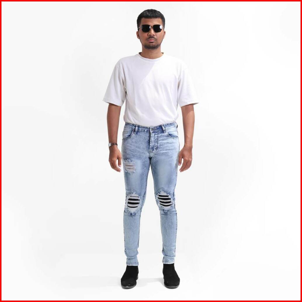 Weird Jeans - Broken Blue - Celana Jeans Denim Pria Slimfit Skinny Pria Cowok Stretch Karet Bahan Premium Warna Biru