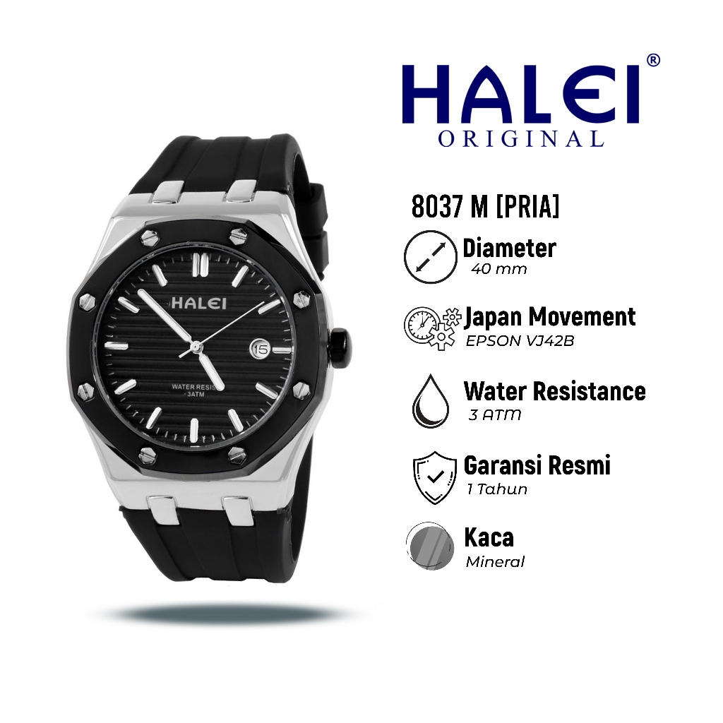 Halei 8037 M Jam Tangan Pria Halei Original Olahraga Anti Air Silikon Rubber Tanggal Analog Kekinian