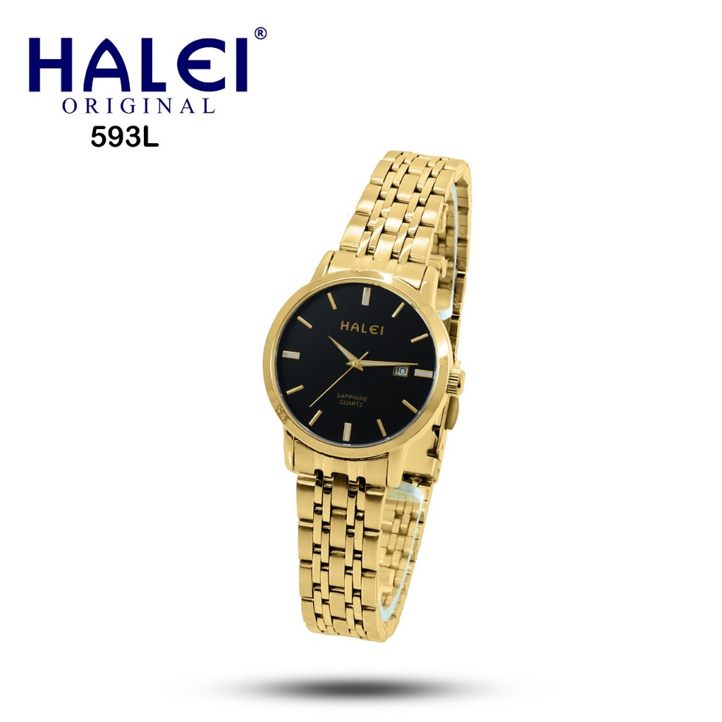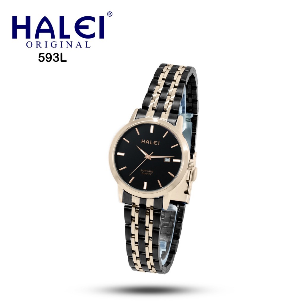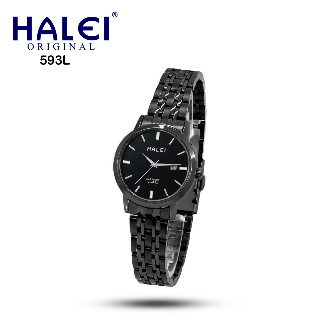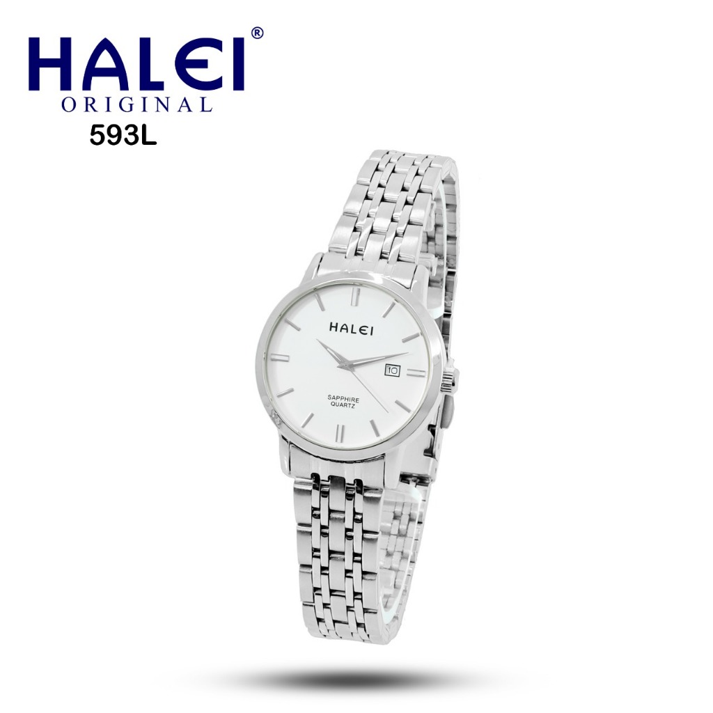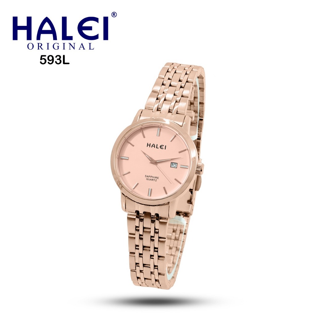 Halei Watch 593 L Jam Tangan Wanita Halei Kecil Elegan Anti Air Rantai Stainless Back Tanggal Analog