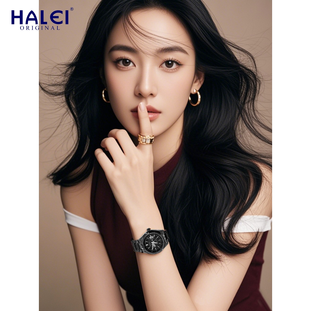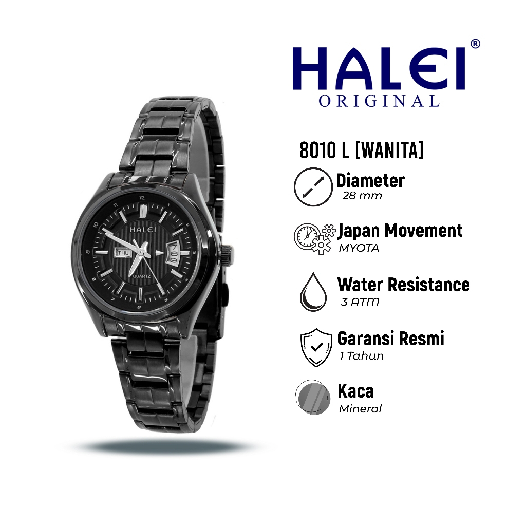 Halei 8010 L Jam Tangan Wanita Halei Original Anti Air Rantai Stainless Back Tanggal Hari Analog