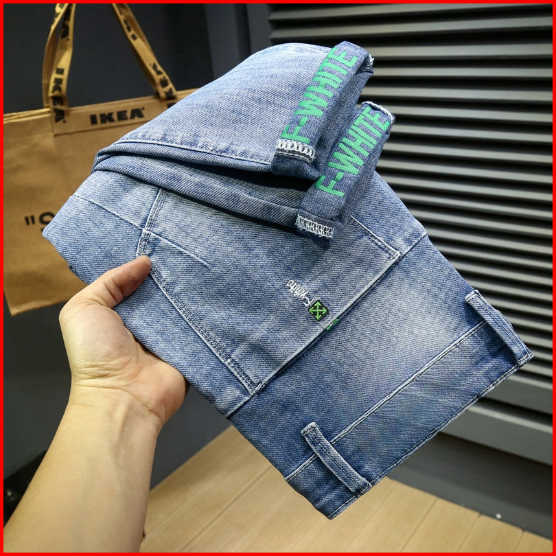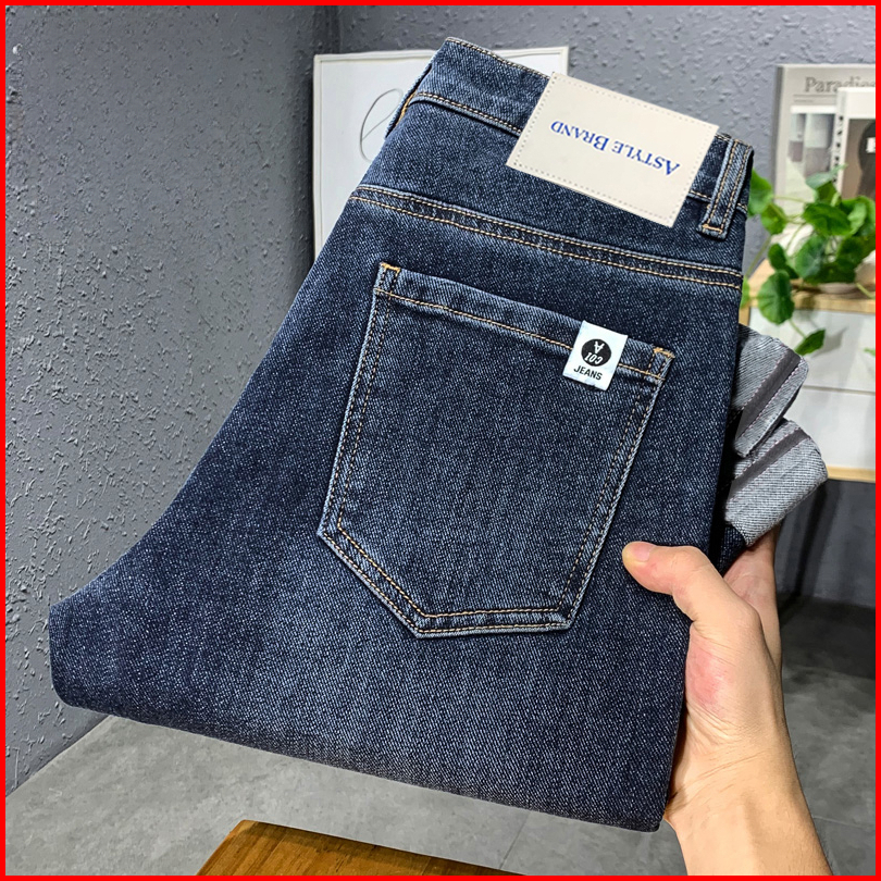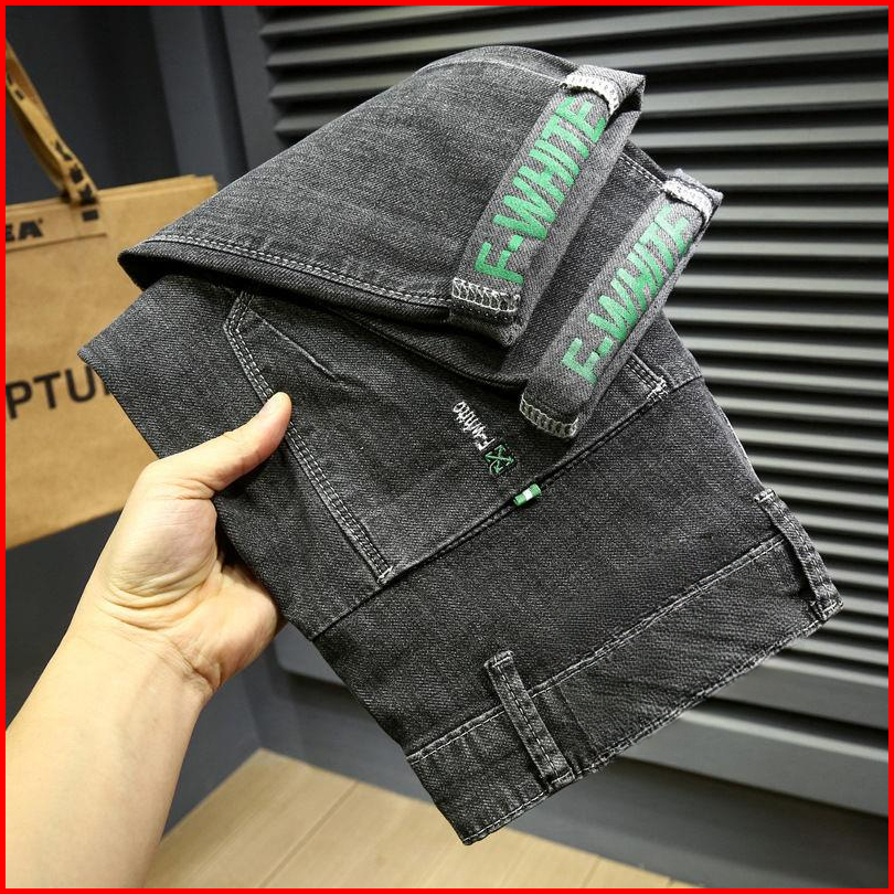 Celana Panjang Pria Slim Fit Jeans Stretch Pria Korean Style Denim Selvedge Standar Pensil Pants Jeans Hitam Abu Denim P