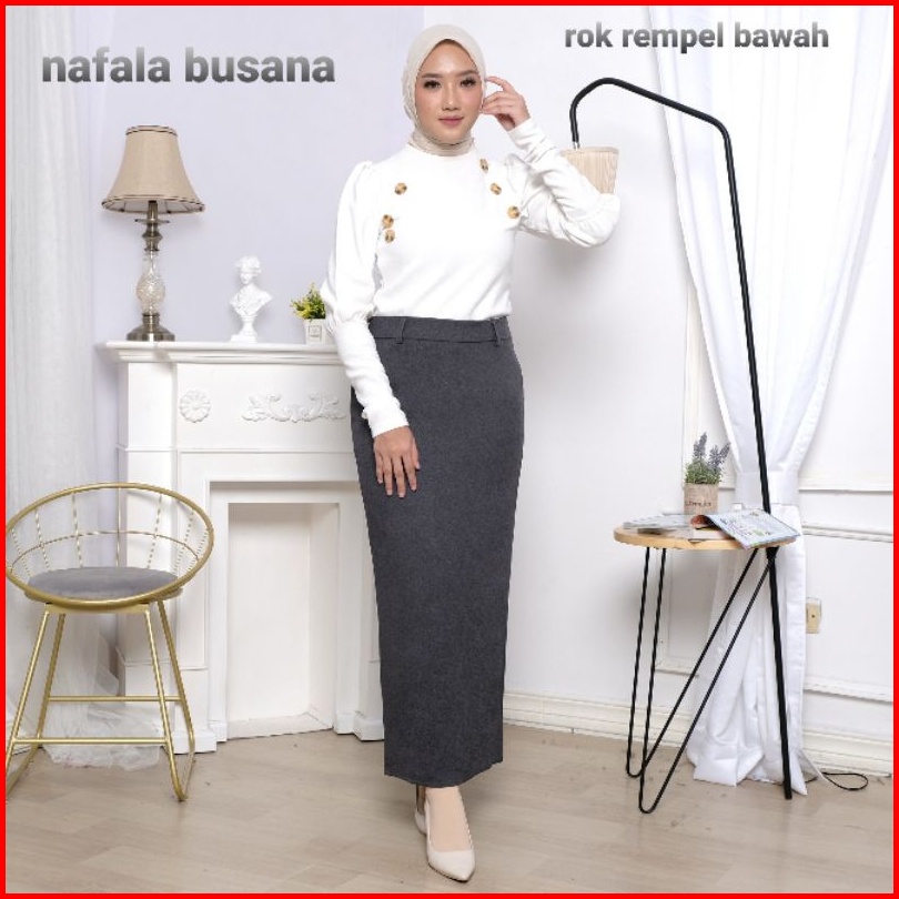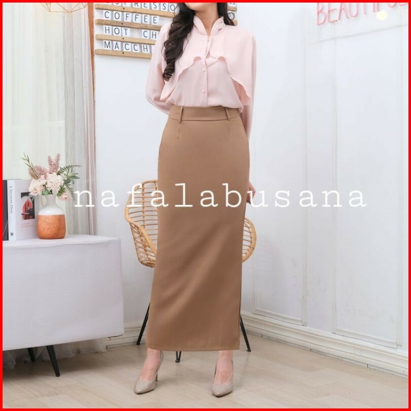Rok Span Kerja Wanita Bahan Kantor Formal Wanita Rempel Bawah Biron S.m.l.xl