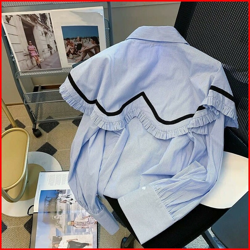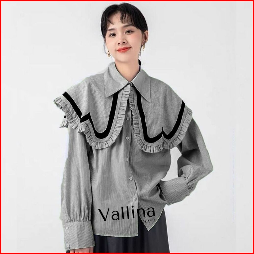 Vallina Outfit - Cameron Top Blouse Bertha Collar Atasan Shirt Kemeja Stripe Salur Cotton Korean Remaja Wanita Premium