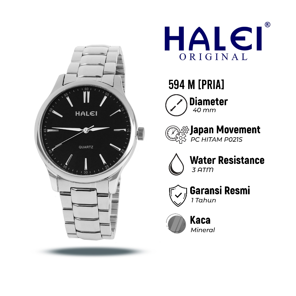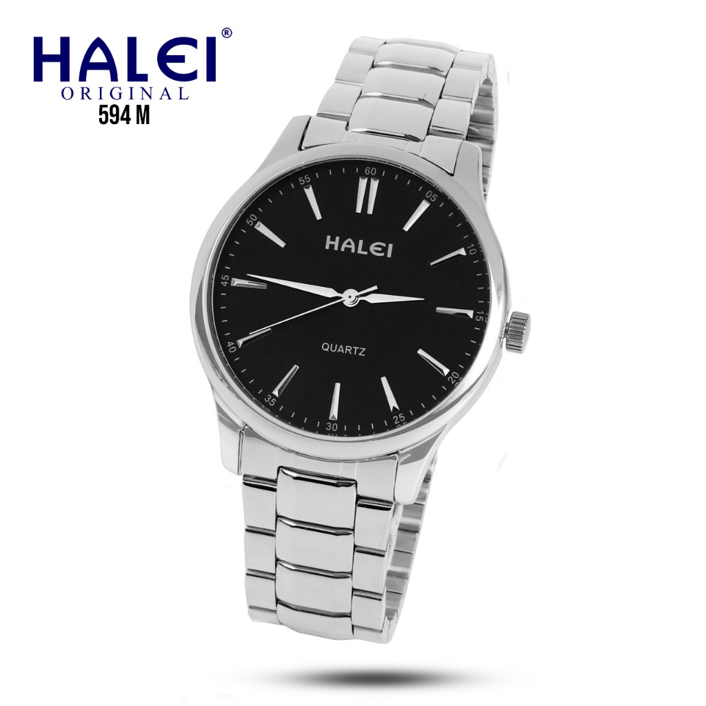 Halei 594M Jam Tangan Pria Halei Original Kasual Anti Air 30m Rantai Stainless Back Analog Kekinian