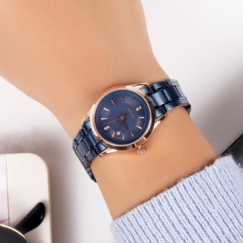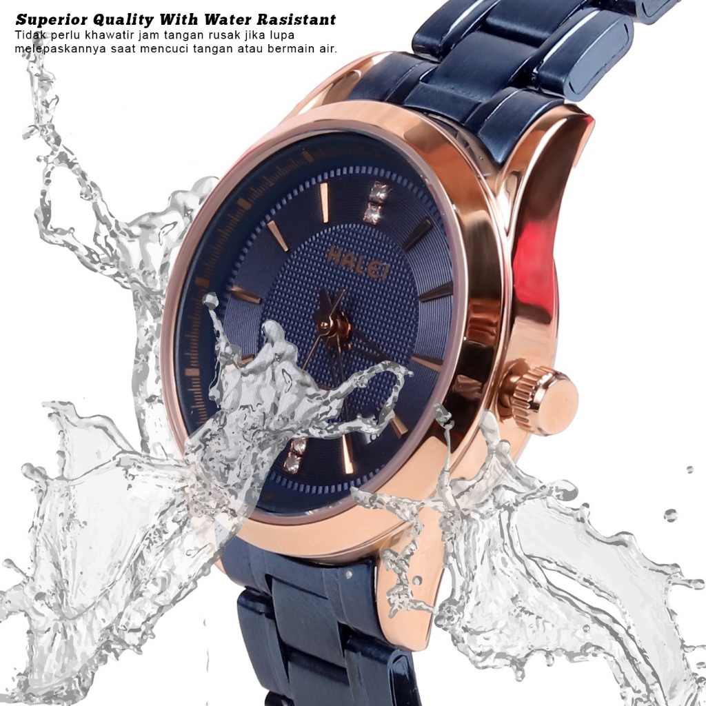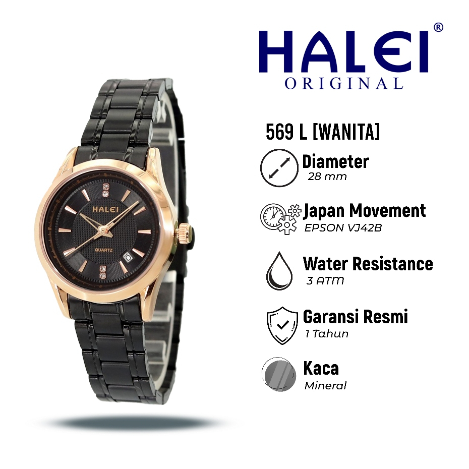 Halei 569 L Jam Tangan Wanita Halei Original Fashion Anti Air Rantai Stainless Back Tanggal Analog