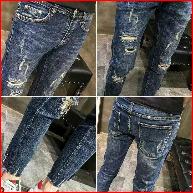 Ootd Korean Style Celana Jeans Slim Fit Pria Celana Ripped Jeans Pria Celana Jeans Robek Pria Celana Panjang Pria Dewasa