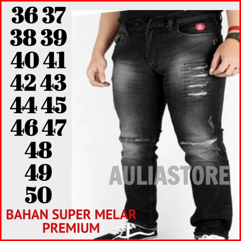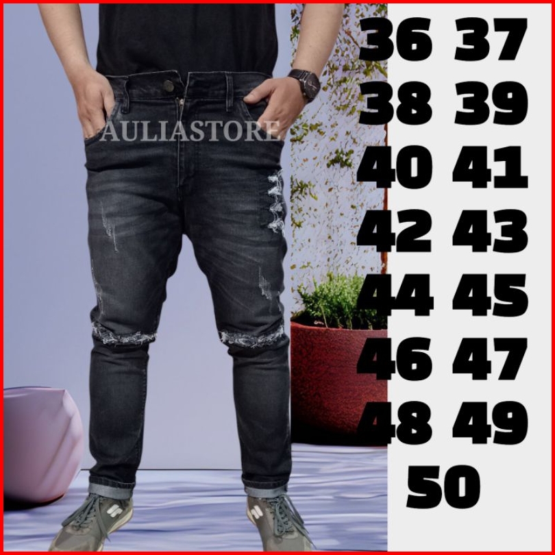 Sobek Jumbo 36-50 Celana Jumbo Sobek Pria Celana Jeans Pria Big Size Bahan Melar
