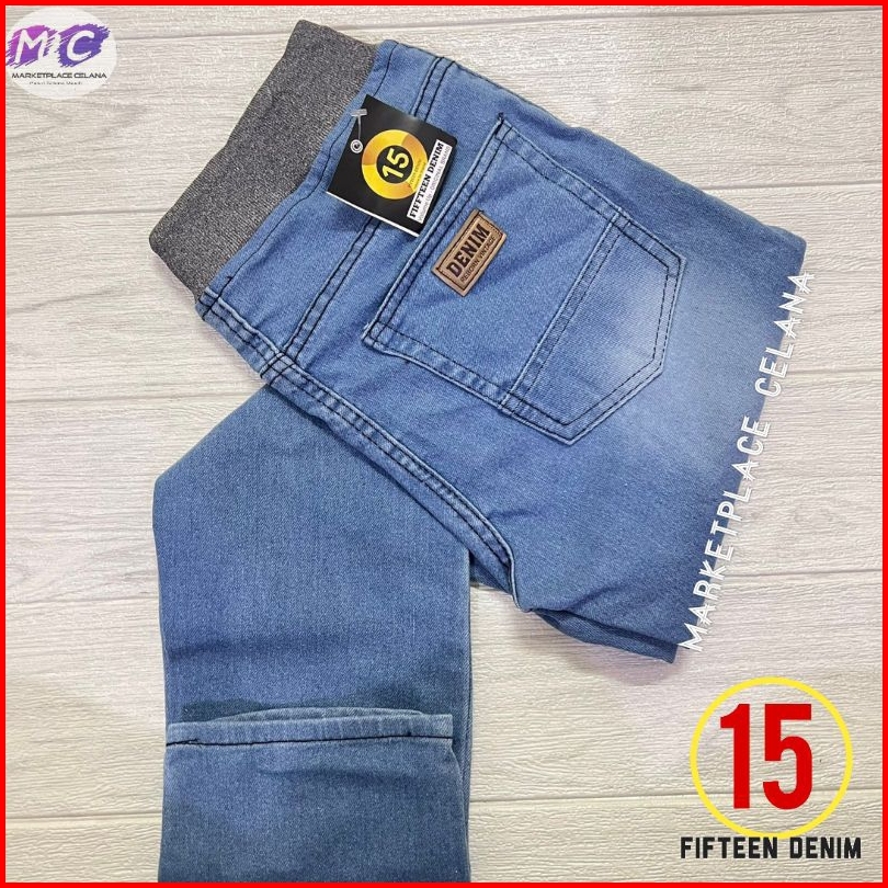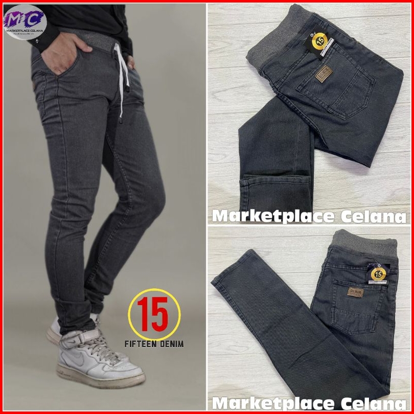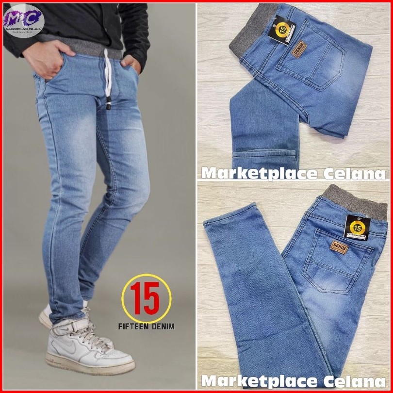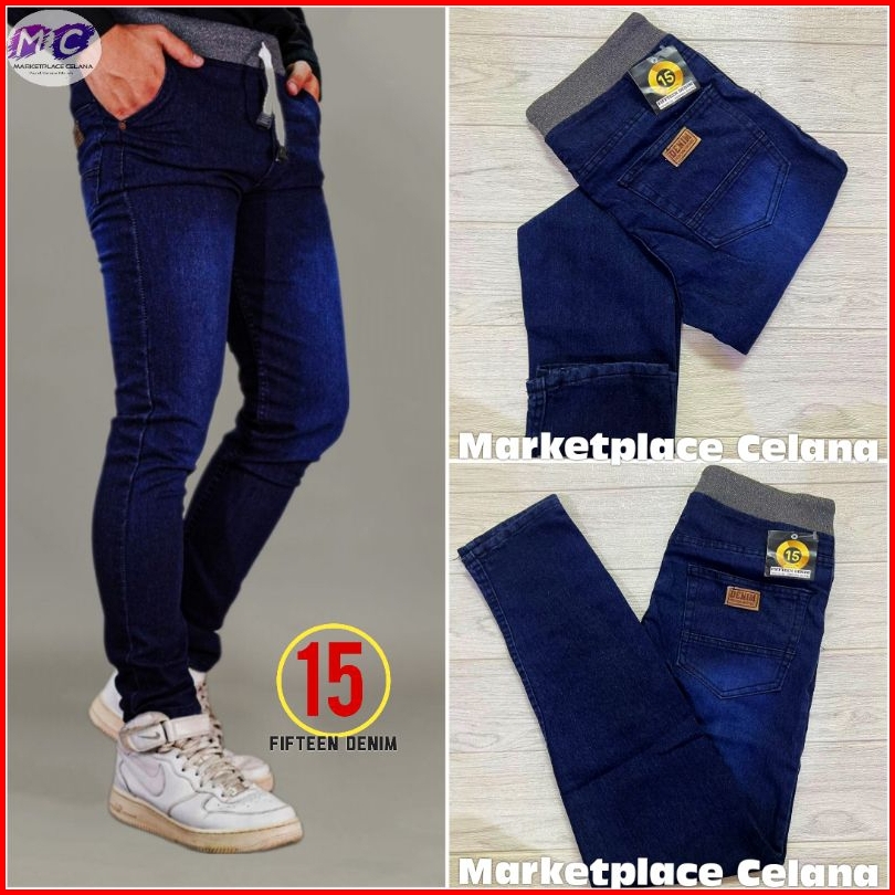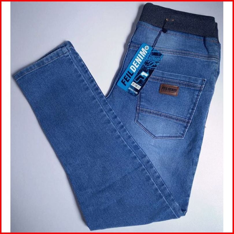 Celana Panjang Cowok Slim Fit Jeans Pinggang Karet Feil