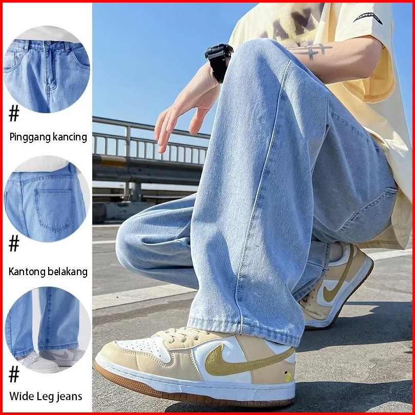 Celana Jeans Pria Baggy Pants Korean Style Oversize Loose Blue Jeans Straight Kulot Boyfriend Jeans Longgar Celana Cowo