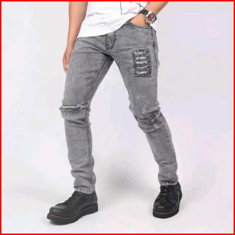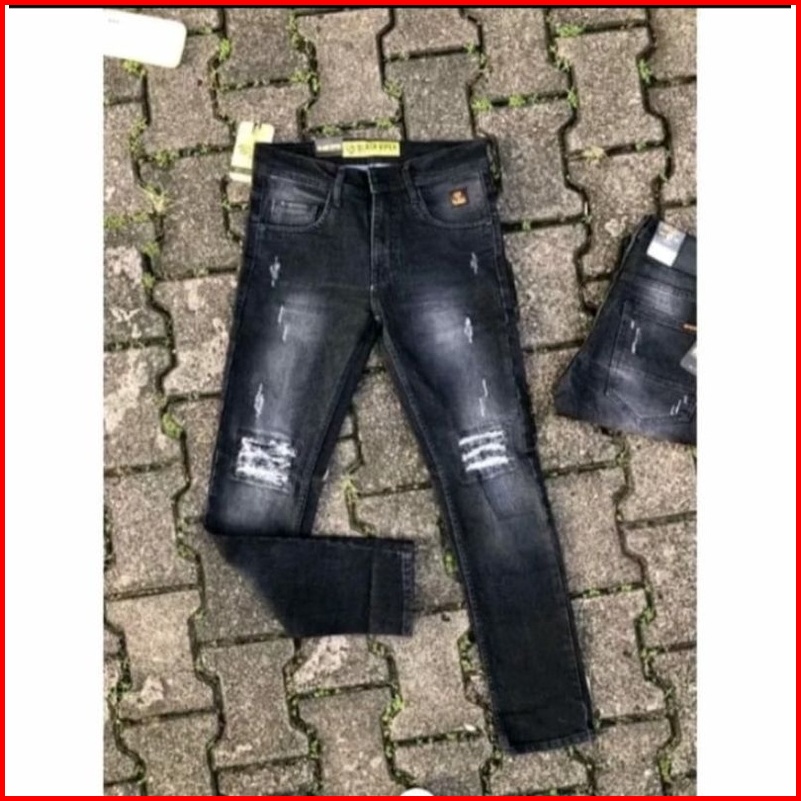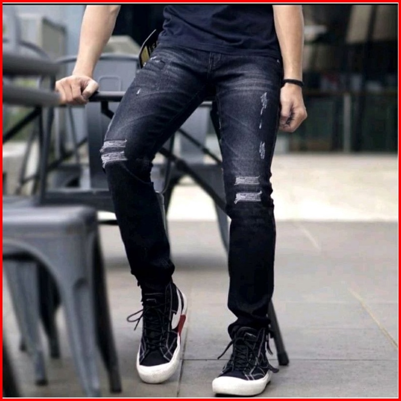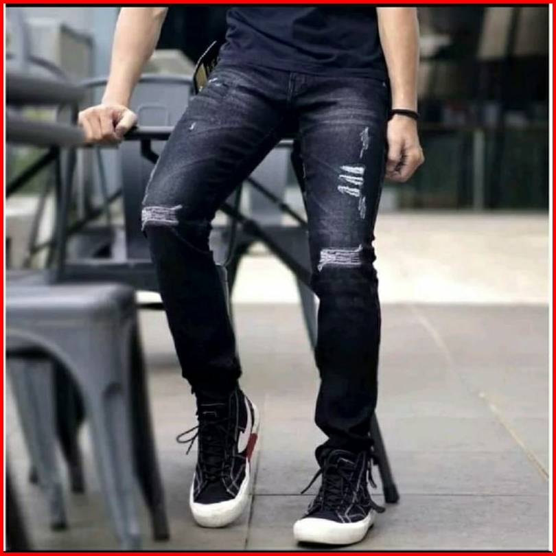 Slimfit Jeans Bikers Pria Ripped-rock Series Black Jazz Edition