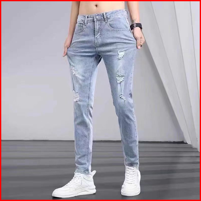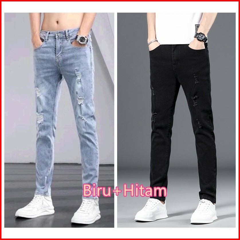 Celana Jeans Sobek Pria Panjang Slimfit Stretch Jens Skinny Pensil Ripped Pria Jins Casual Cowok Celana Denim Dewasa Lak