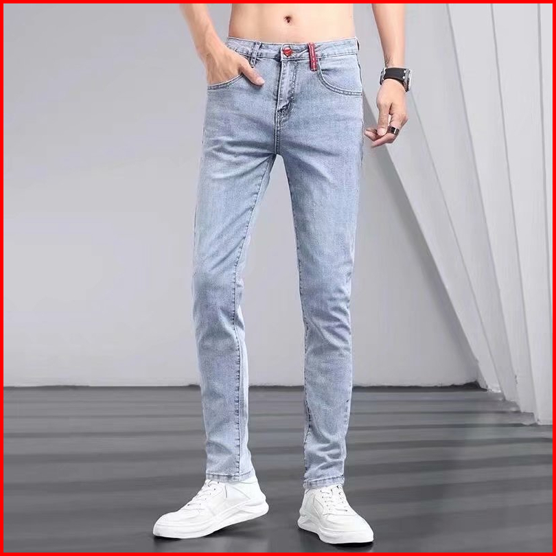 Celana Jeans Pria Slim Fit Jeans Stretch Pria Skinny Pants Standar Jeans Biru Muda Celana Pencil Soft Jeans Cowok Laki L