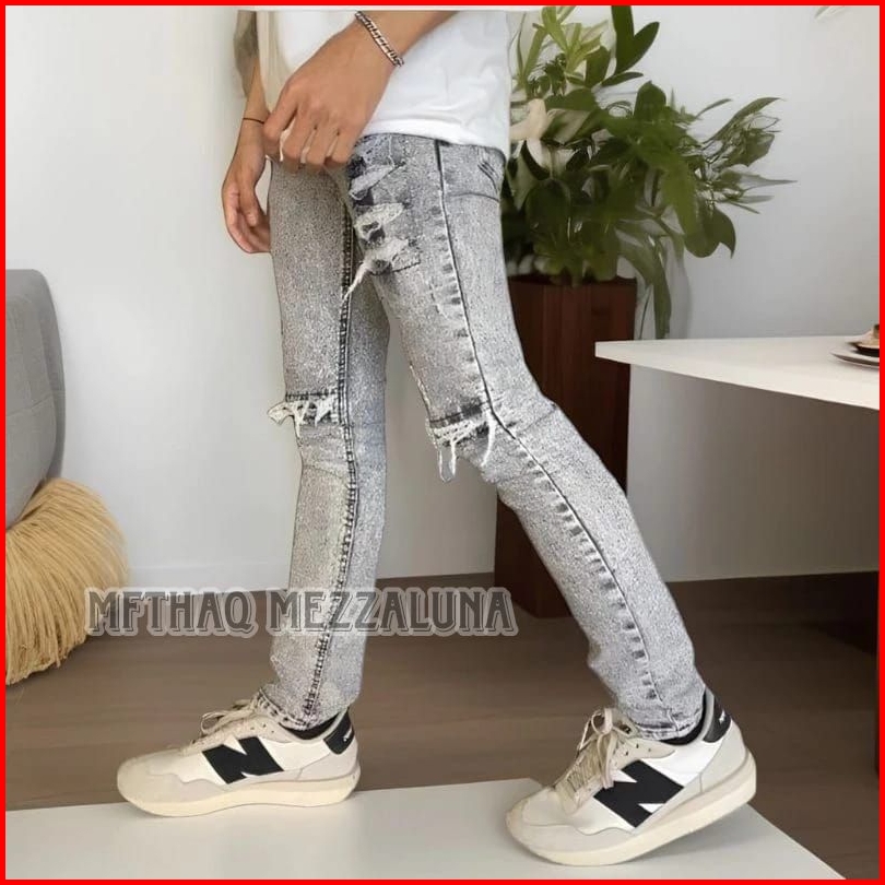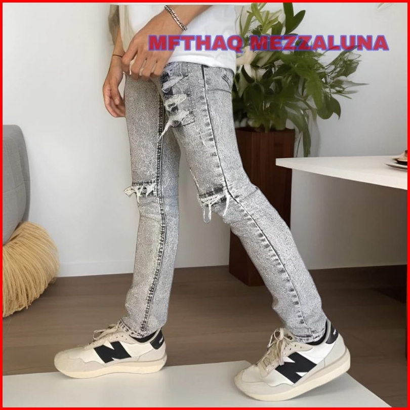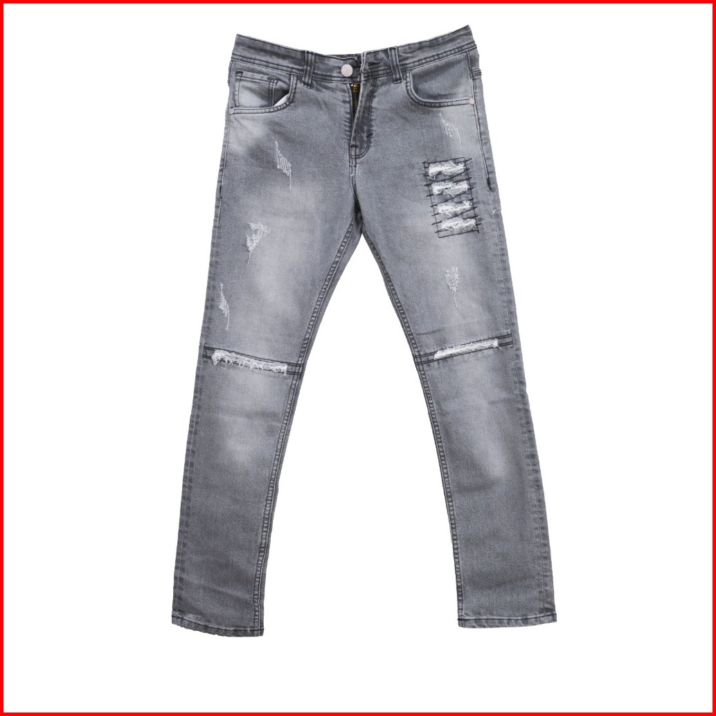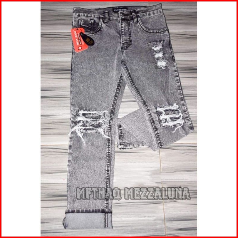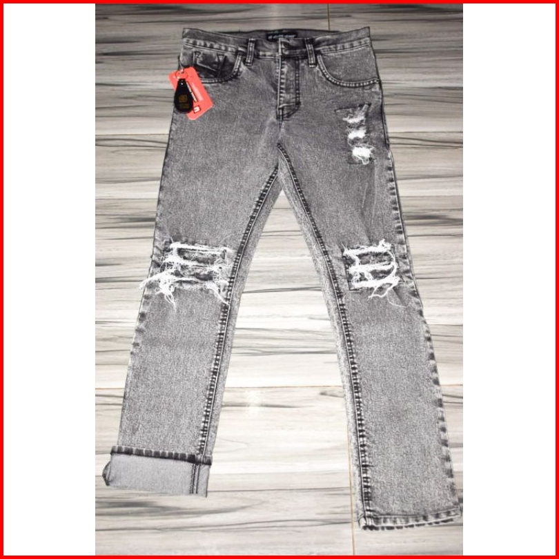 Celana Jeans The Raw Indigo Classic Sobek Bikers Denim Abu Sandwash Premium