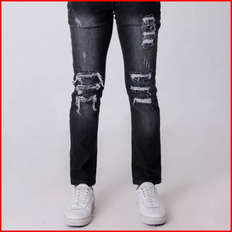Ripped Jeans Pria - Celana Sobek Pria Skinny Jeans Street Zigzag Destory Bikers Premium - Celana Jeans Sobek Pria Snow W