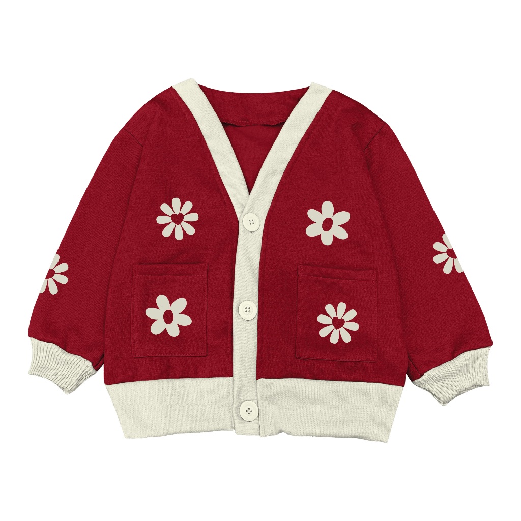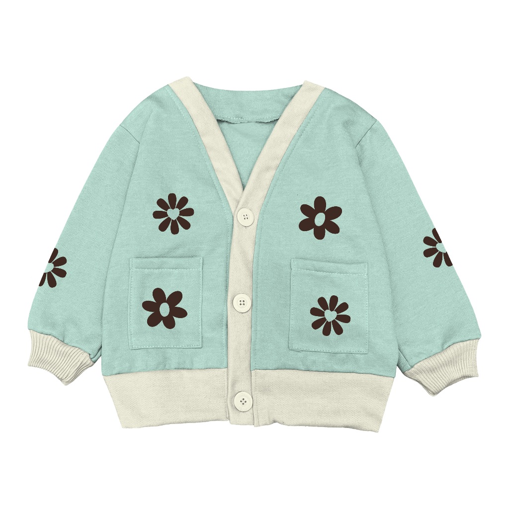 Cardigan Anak MECUKIDS FLOWER Bahan Fleece Berkualitas untuk Perempuan dan Laki-Laki Umur 1-12 Tahun