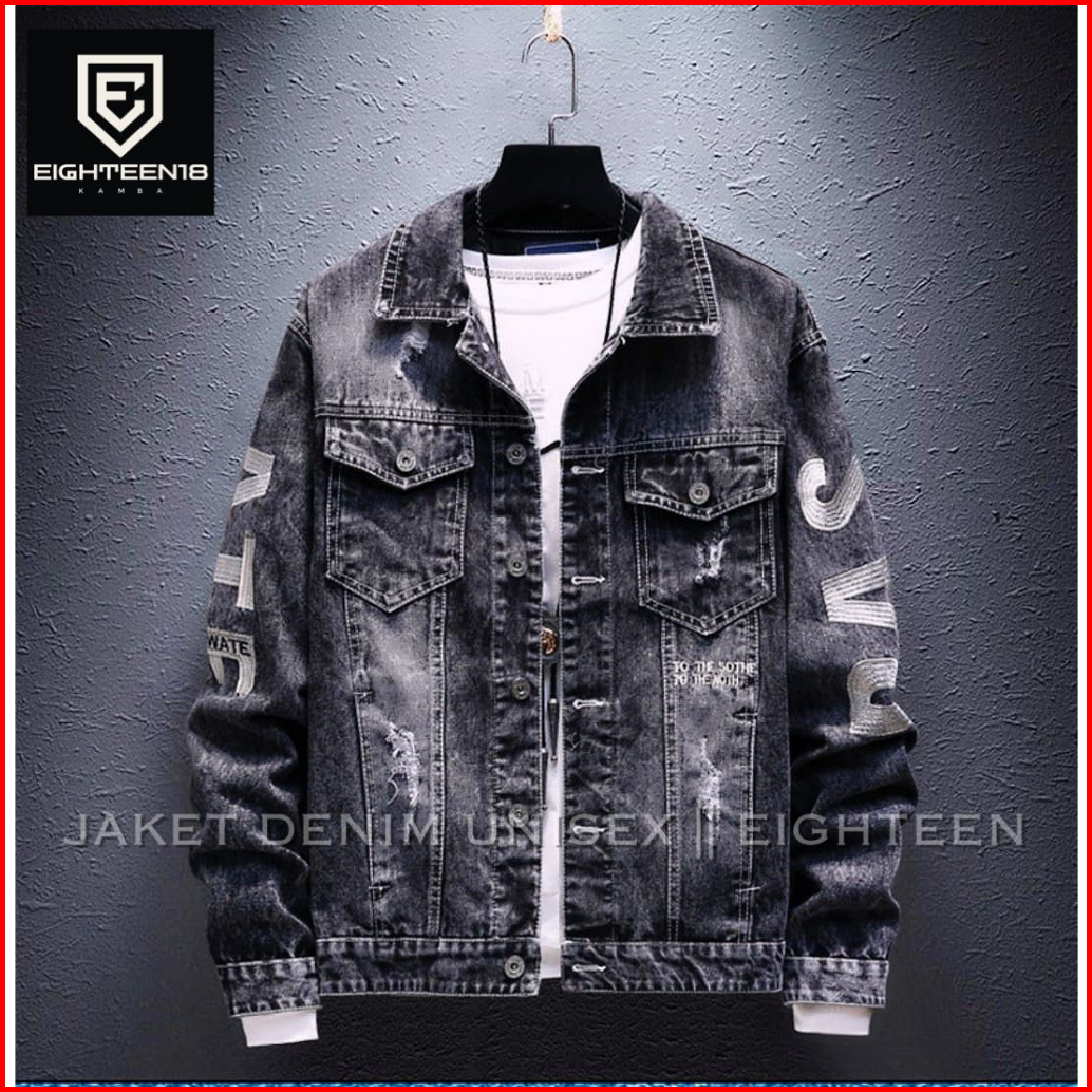 Jaket Pria Jeans Denim Cowok Unisex Motif Bordir Snowblack Distro Keren Casual Terbaru