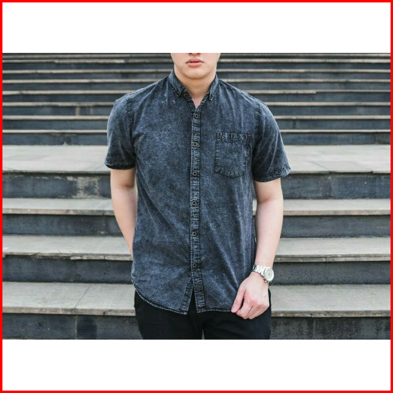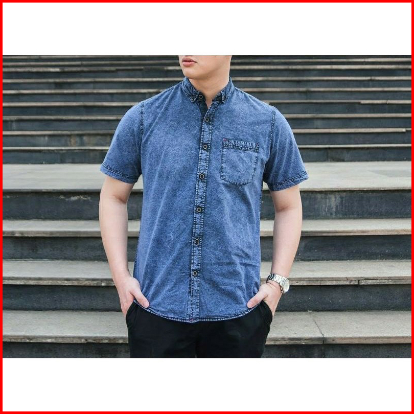Kemeja Jeans Denim Washed Kemeja Jeans Slim Fit